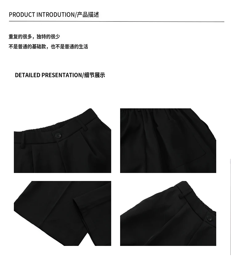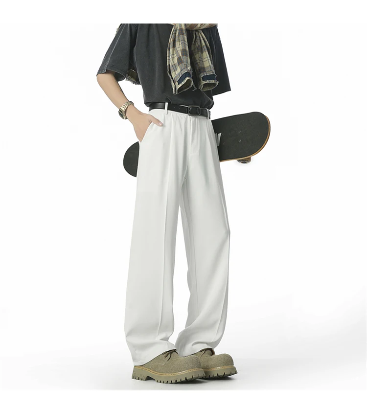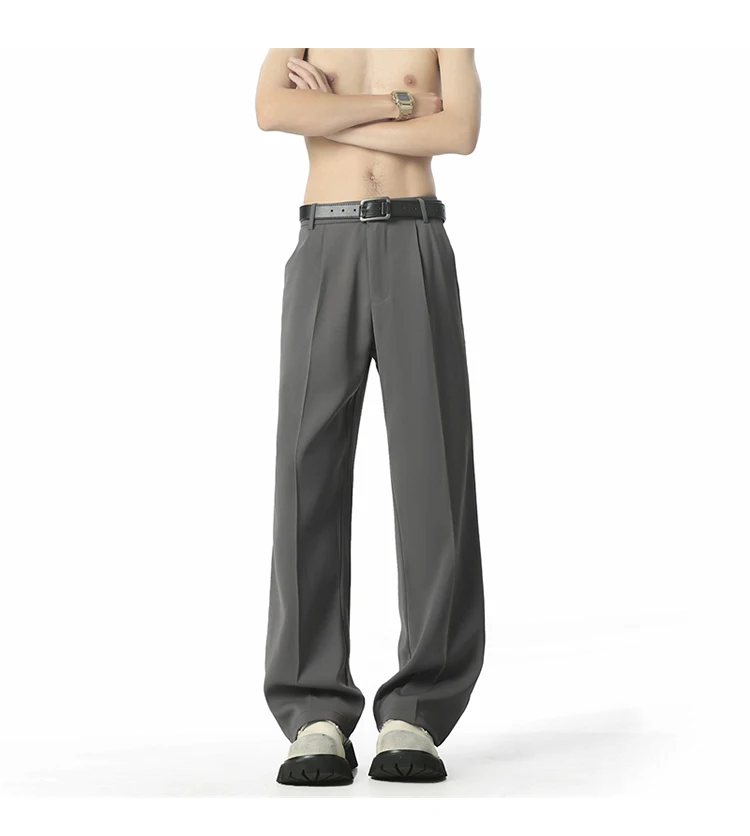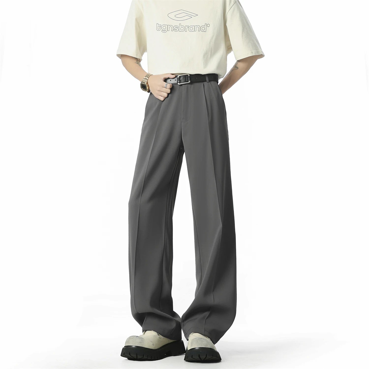 HEARUJOY - Men's Straight Baggy Casual Pants Korean Slit Personality Suit Trousers Fashion Formal Business Male Streetwear Gray Black