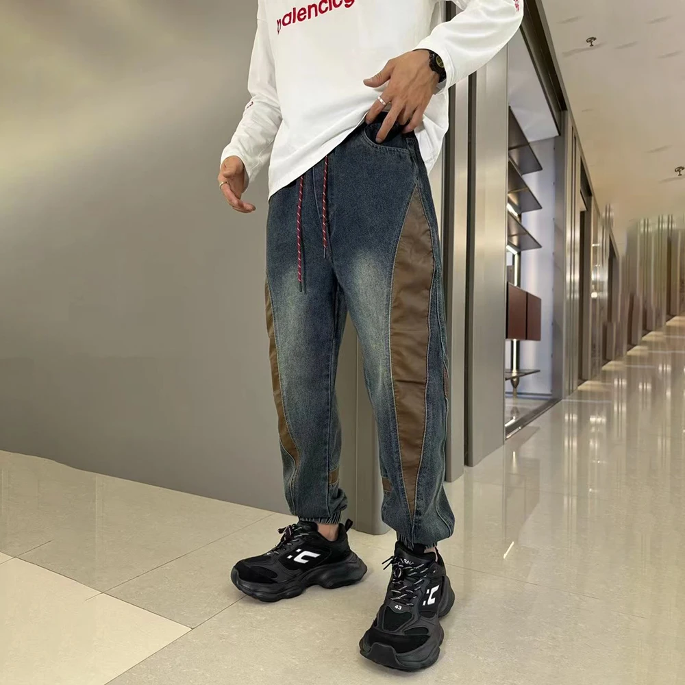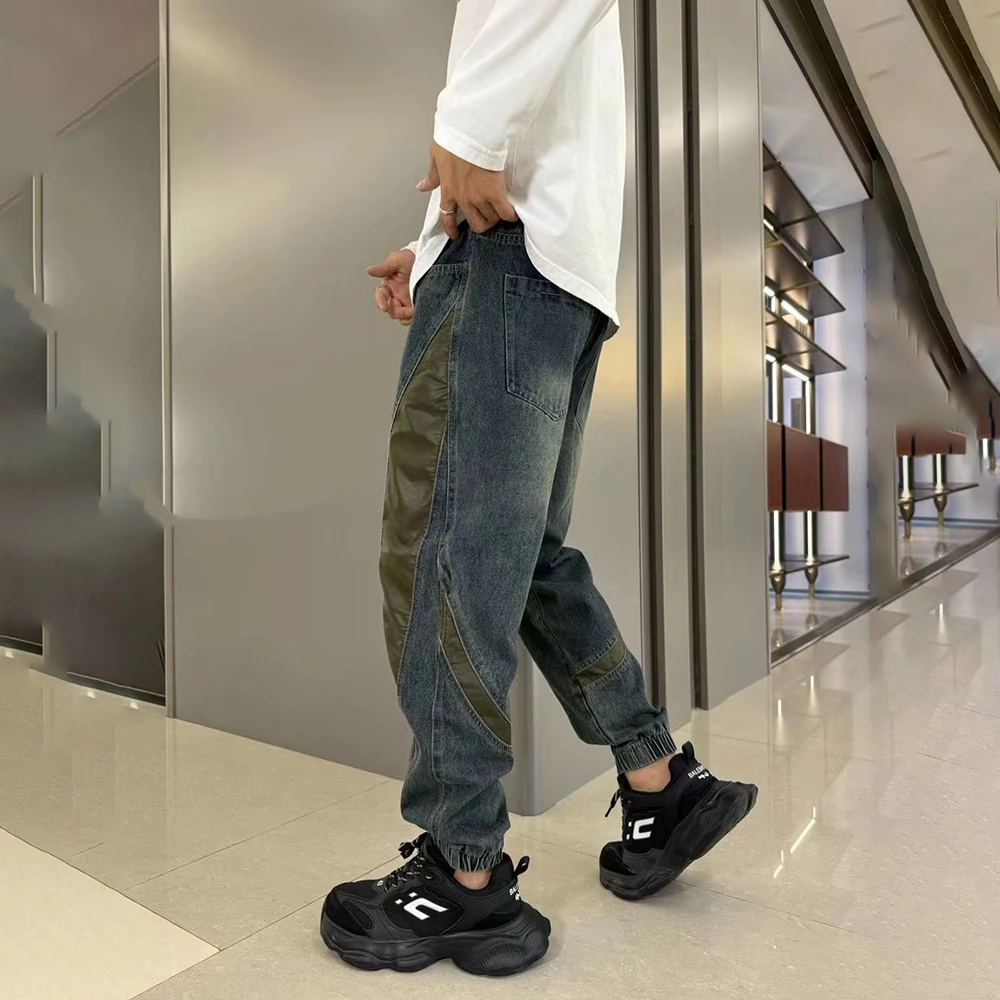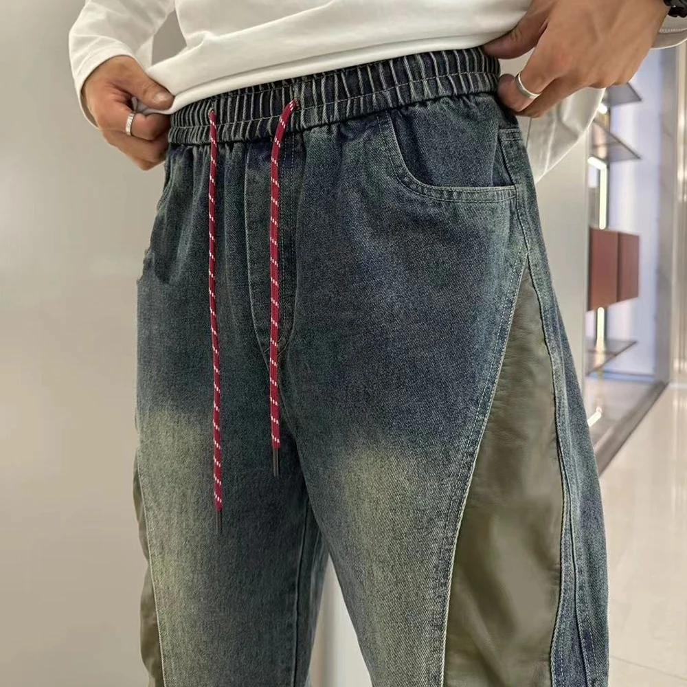 Hearujoy Mens Street Hip-Hop Y2k Jeans Autumn New Fashion Trend Contrast Color Stitching Trousers Loose Slim Elastic Waist Harem Pants