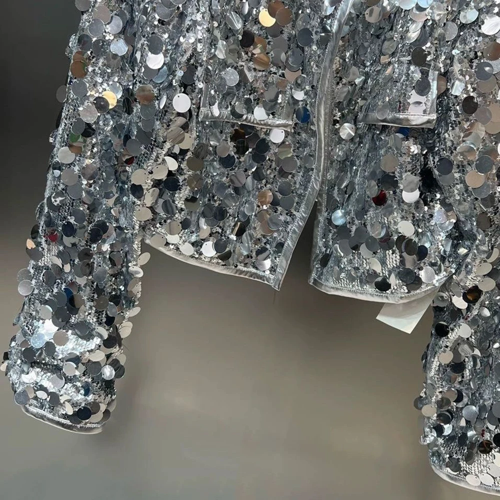 Hearujoy Mens Street Sequin Stage Performance Short Jacket Autumn Genderless Nightclub Niche Personality Fashion Trend Jacket Unisex