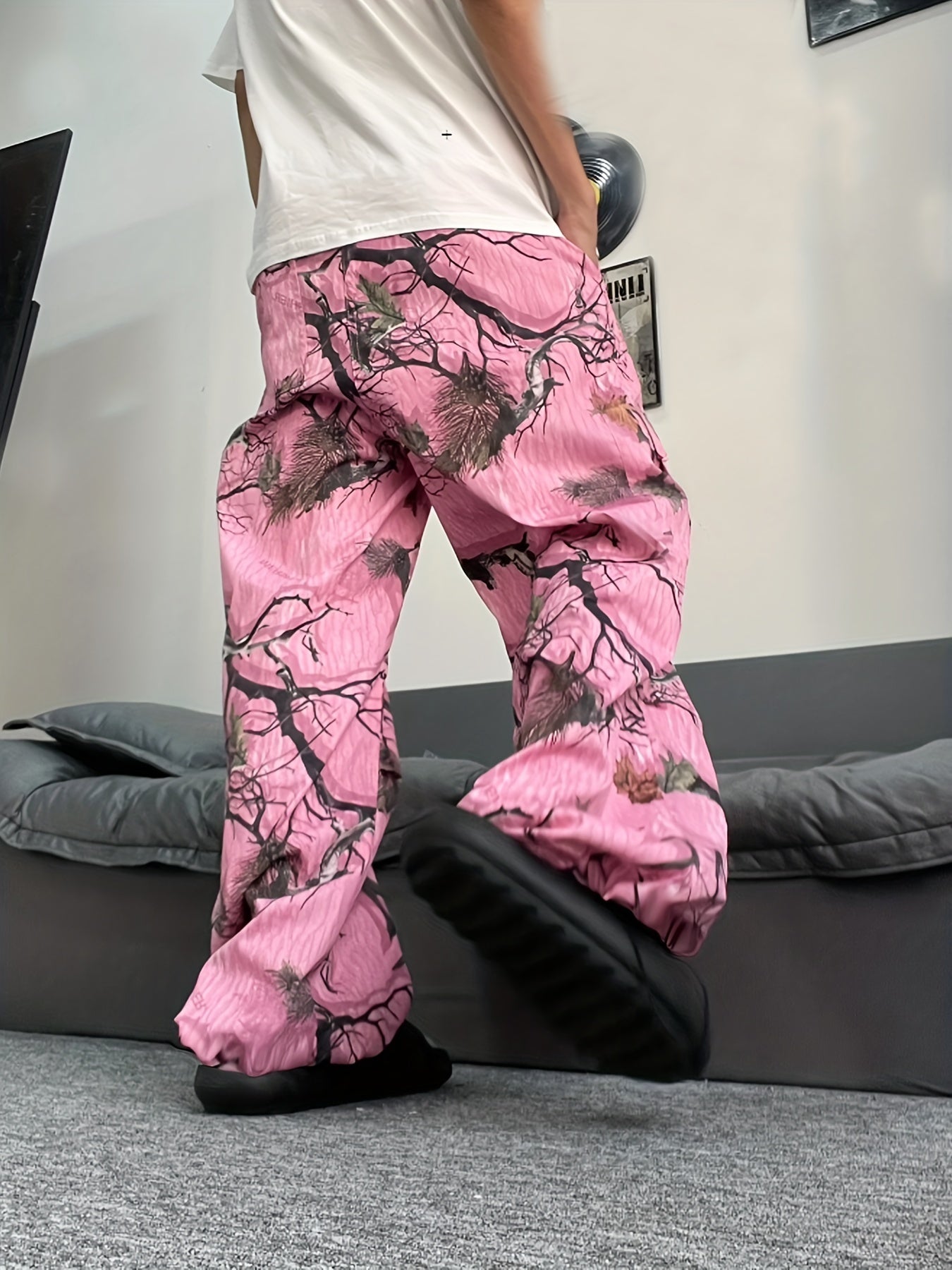 Hearujoy Men's Street Style Plant Print Drawstring Joggers - Casual & Fashionable Loose-Fit Sweatpants, Machine Washable, for Autumn, Spring