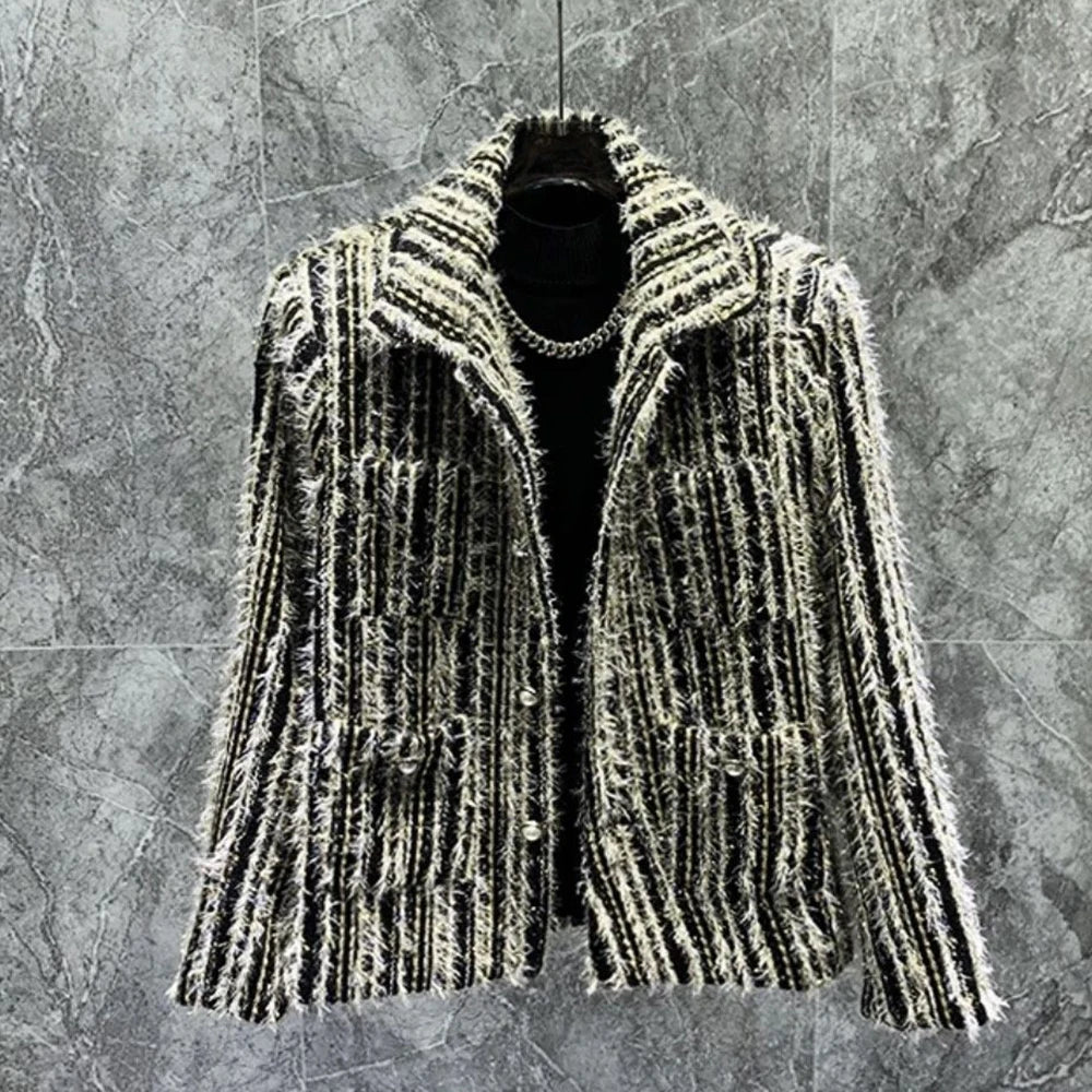 Hearujoy Mens Striped Distressed Tassel Casual Jacket 2024 New Autumn Winter Genderless Fashion French Youth Trend Retro Jacket Unisex