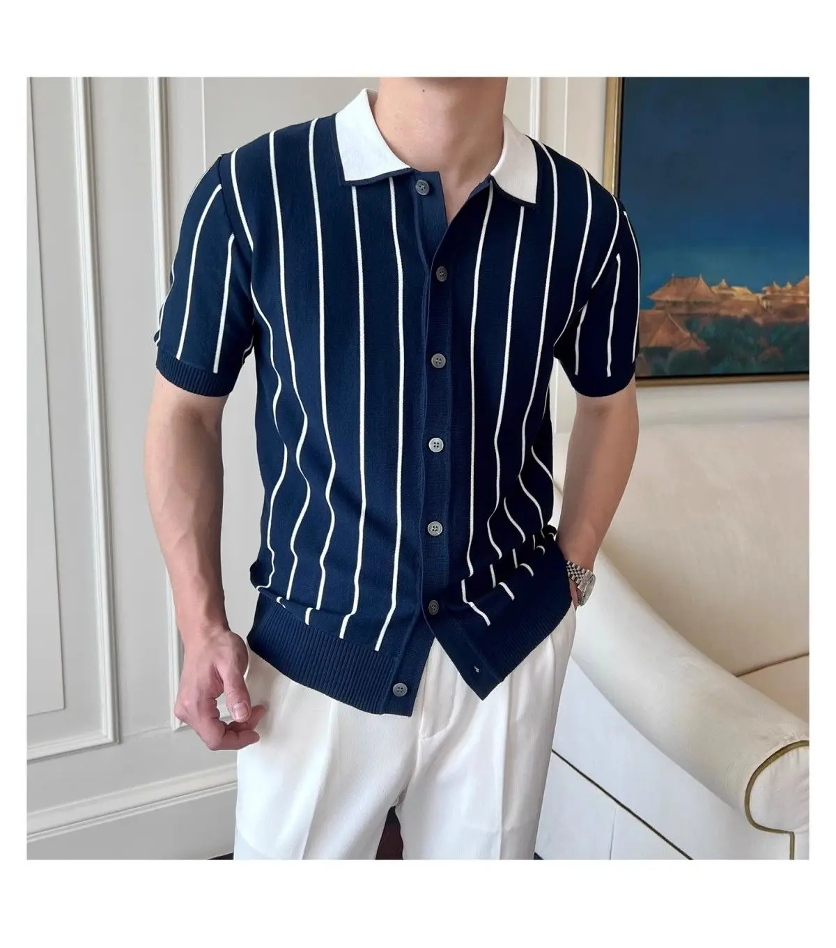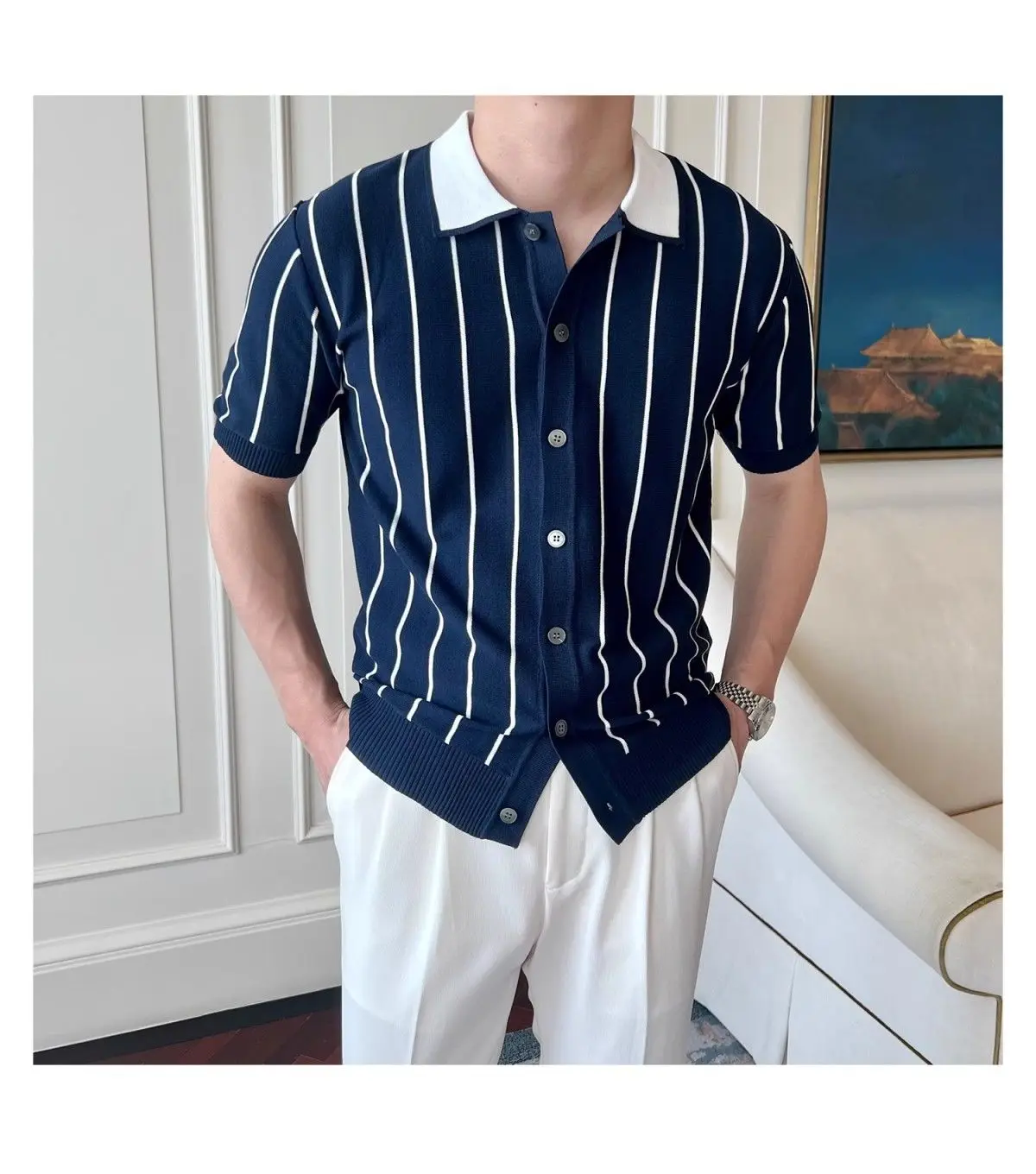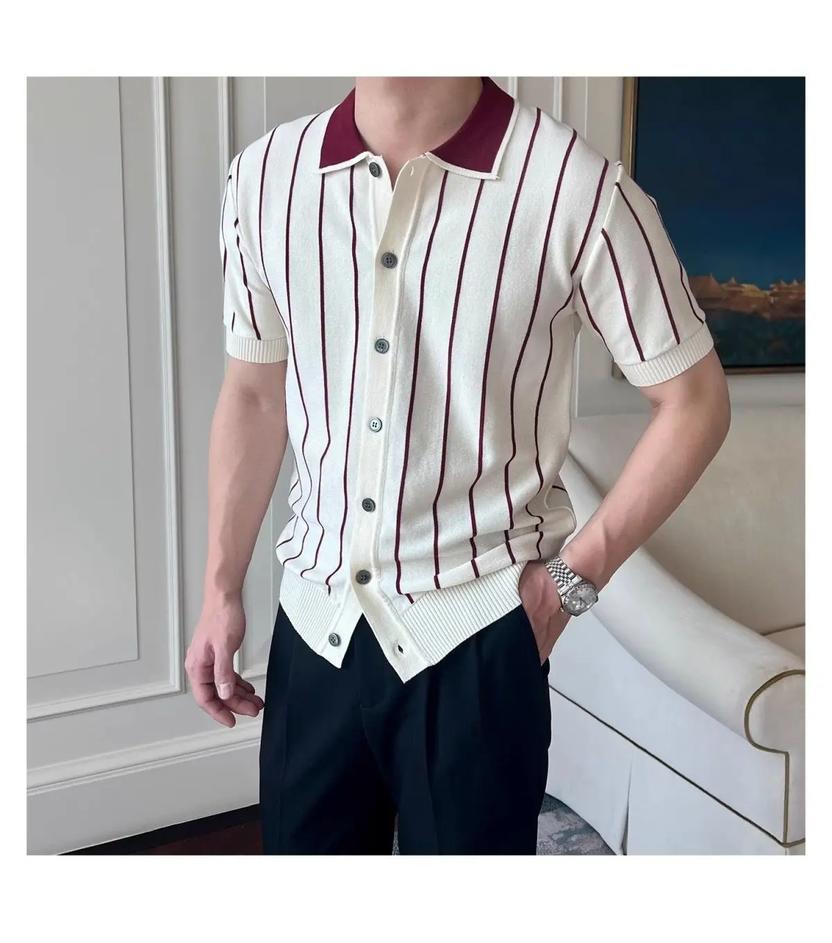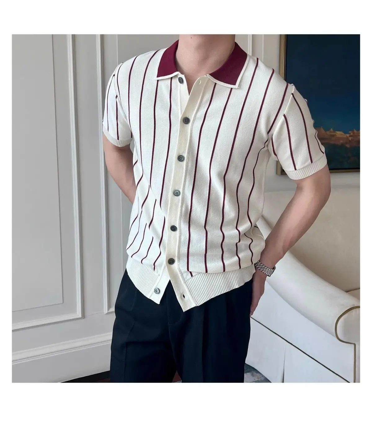 HEARUJOY - Men's Summer Knitted Striped Short Sleeve T-Shirt