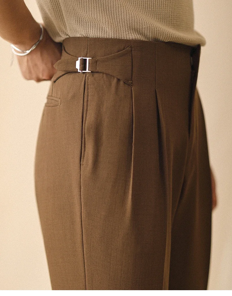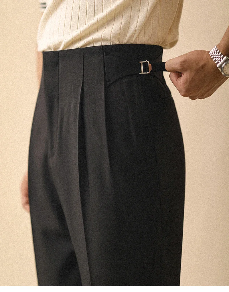 HEARUJOY - Men's Summer Straight Pants Paris Button Non Ironing Loose Fitting Business Naples Casual Pants High Waisted Office Trousers Men