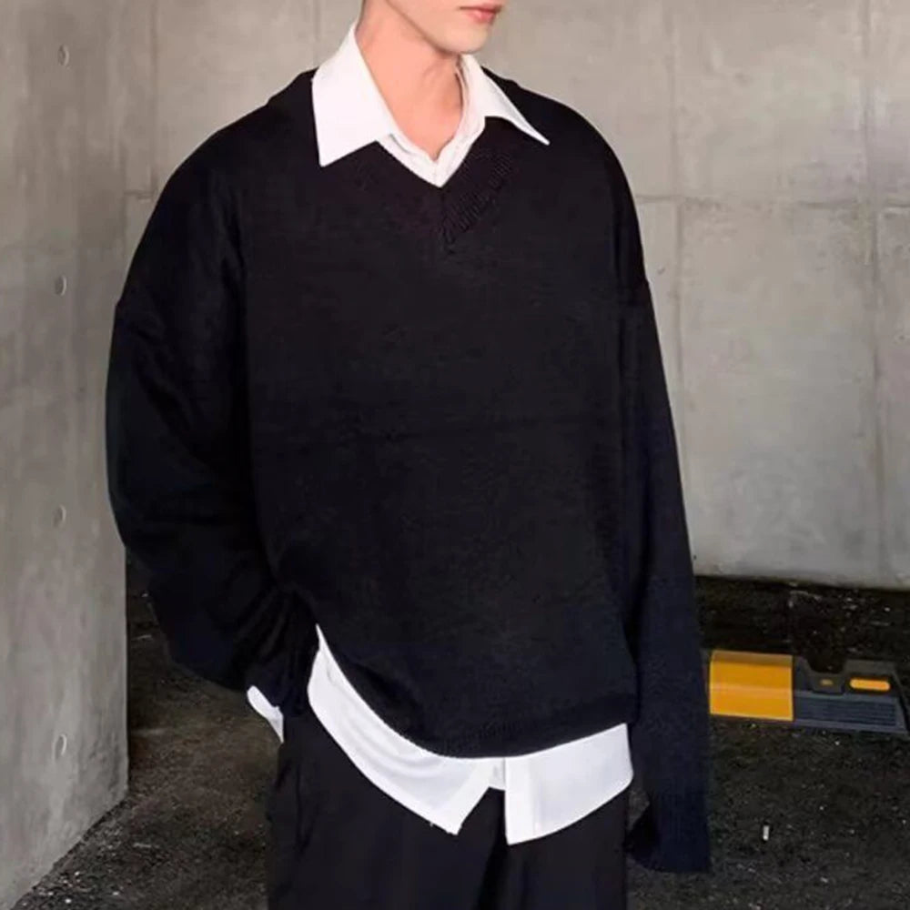 HEARUJOY - Mens Sweater Casual Outerwear Knitted Sweater Autumn Fashion Campus Youth All-Match Solid Color Long-Sleeved Top Men'S Clothing