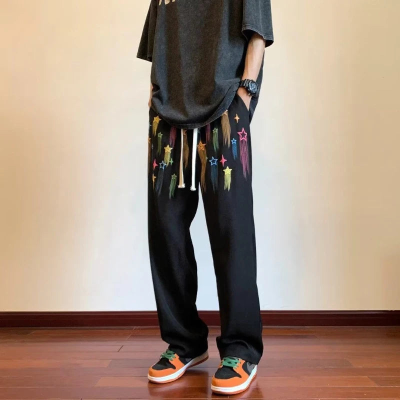 HEARUJOY - Men's Sweatpants Trousers Draped Clearance Sale Autumn Winter Elegant Retro Korean Y2k Cool Graphic Male Sports Pants Printing