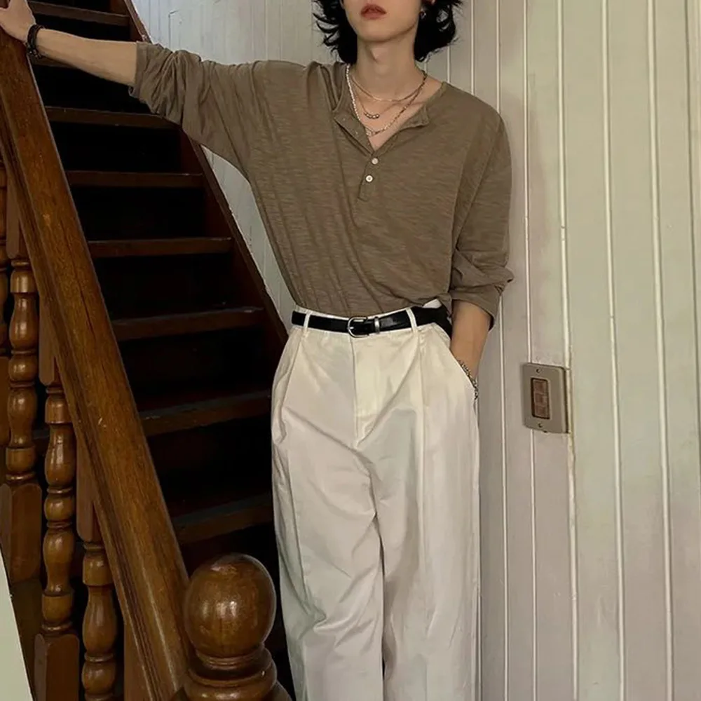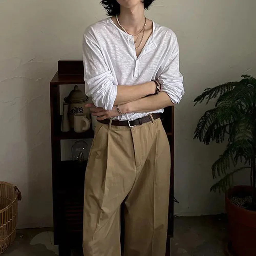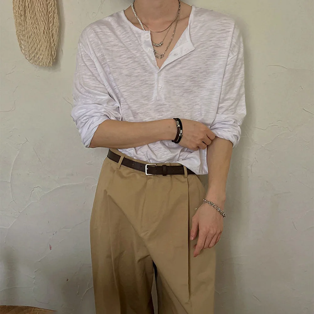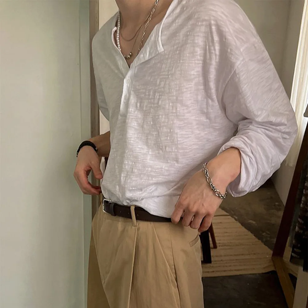 HEARUJOY - Mens T-Shirt Cotton Casual Thin T-Shirt Daily Basic Breathable Beach Vacation Camping Long-Sleeve Top Men'S Clothing