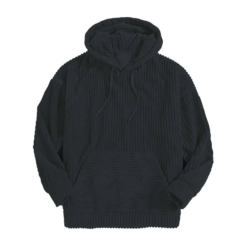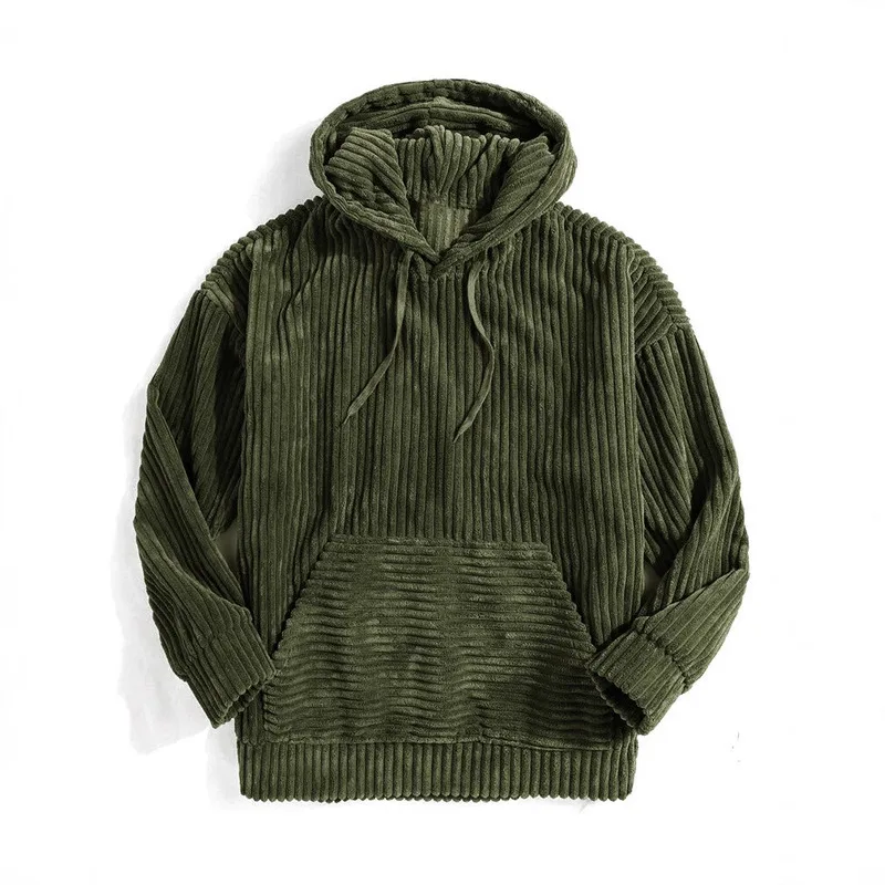 HEARUJOY - MenS Thickened Corduroy Long Sleeve Solid Color Kangaroo Pocket Drop Shoulder Hooded Sweatshirt With Cozy Fit And Stylish Design