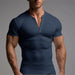 HEARUJOY - Men's Threaded T-shirt Summer Running Sports Fitness Clothes Muscle Slim Fit Short Sleeve T-shirt V-neck Collar Casual Tops