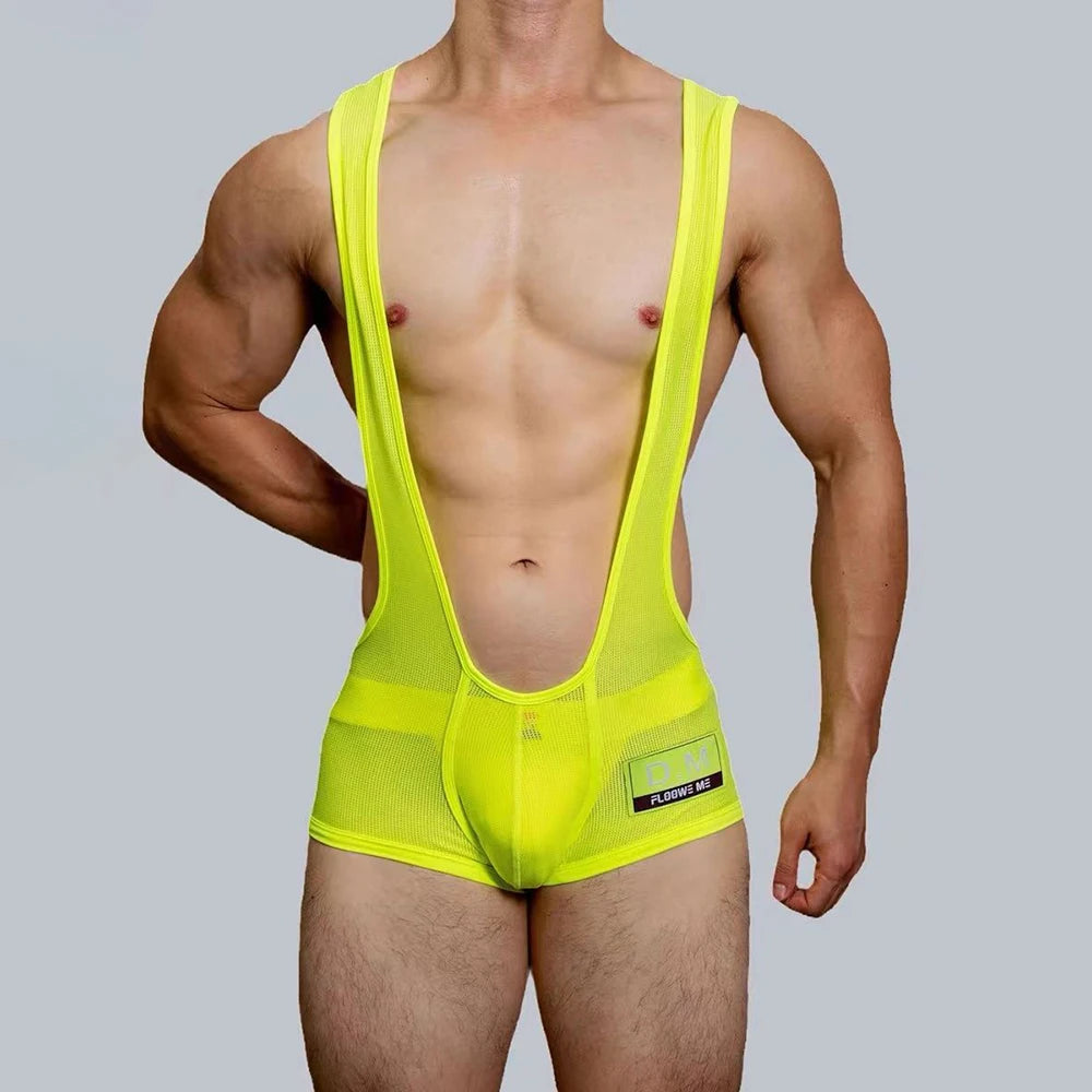 Hearujoy Mens Tight-Fitting Solid Color Mesh See-Through Jumpsuit Body-Shaping Tight-Fitting Home Low-Waist Breathable Underwear For Men