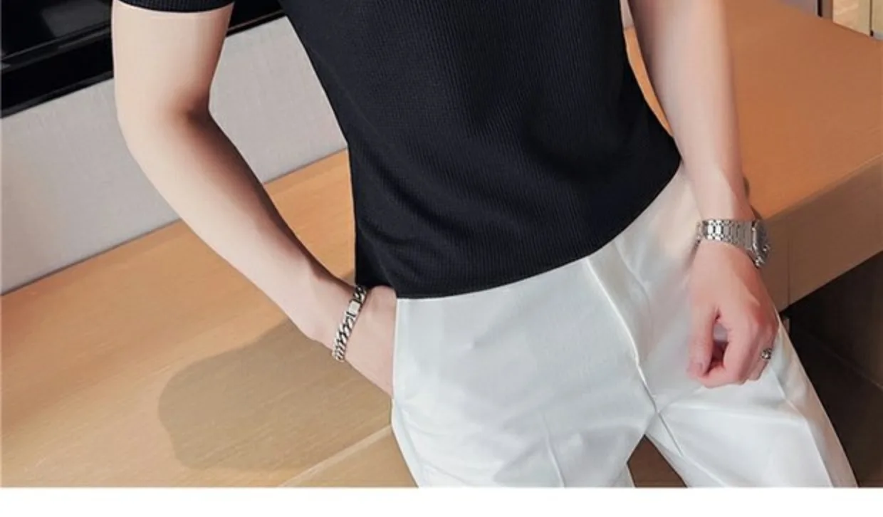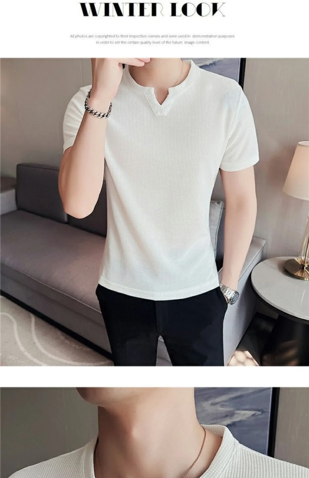 HEARUJOY - Men's Waffle Knit T-Shirt Short Sleeve - Premium Breathable Ice Silk Slim Fit Tee, Lightweight Casual Top, Coffee