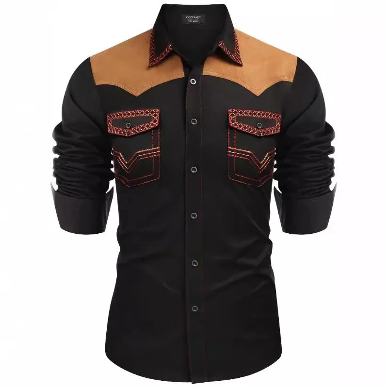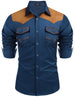 HEARUJOY - Men's Western Shirt, Long-sleeved Denim Shirt, Men's Casual Buttoned Color-blocked Shirt Top