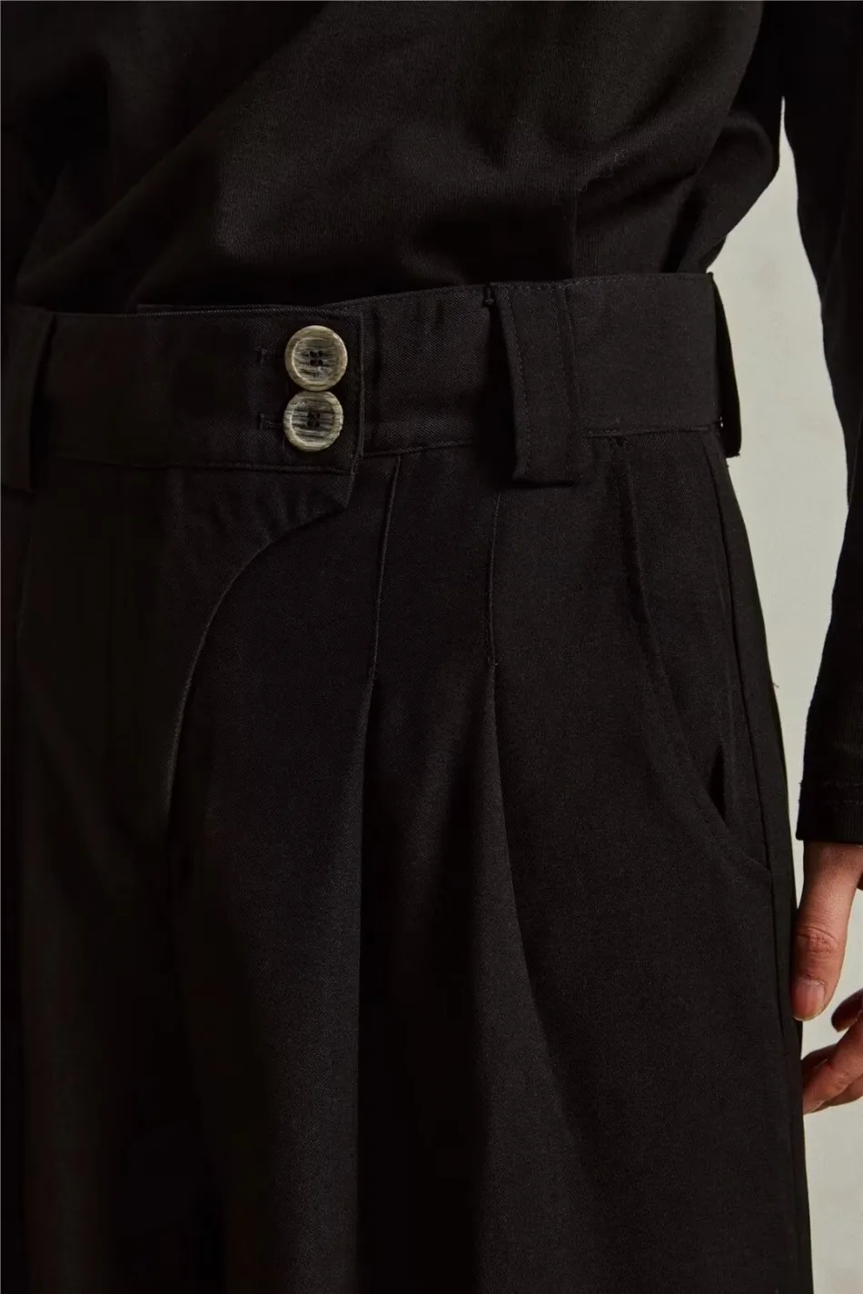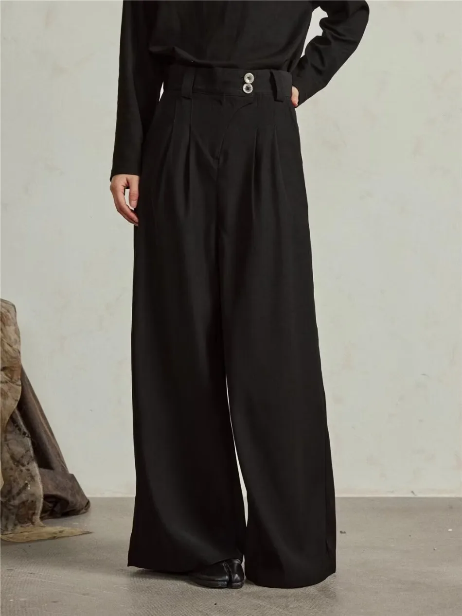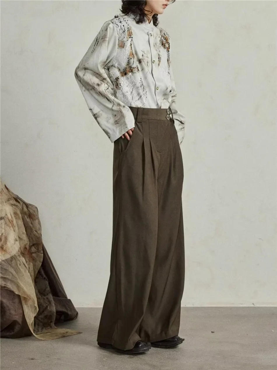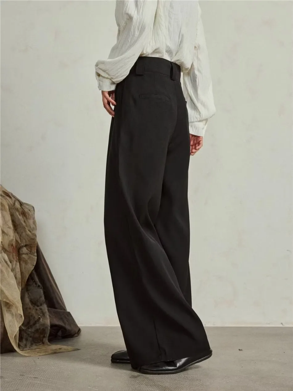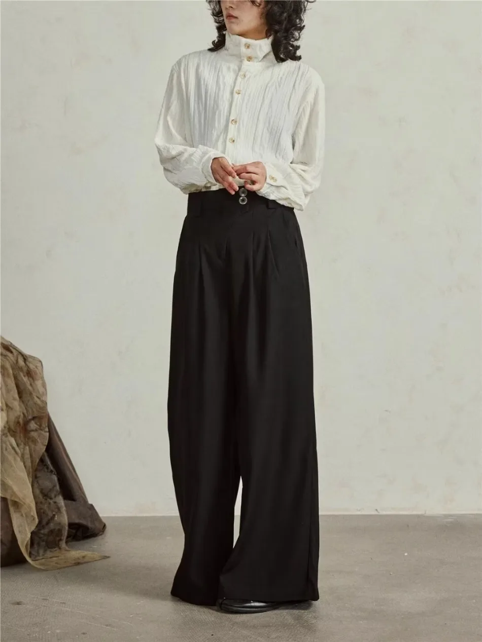 HEARUJOY - Mens Wide Leg Pants Retro Simplicity High Waisted Fashion Straight Leg Suit Trousers Button Trend Solid Pantalones Thin