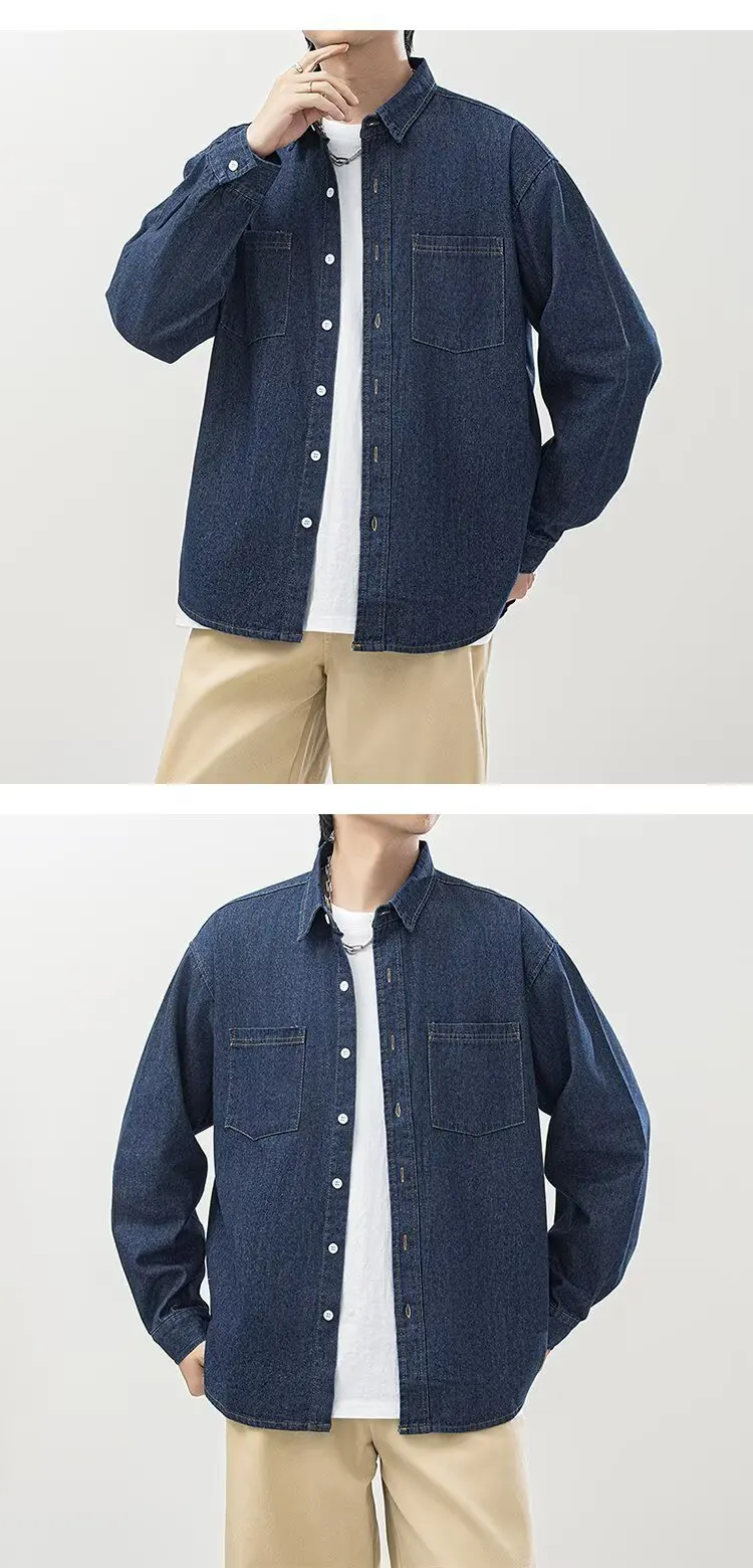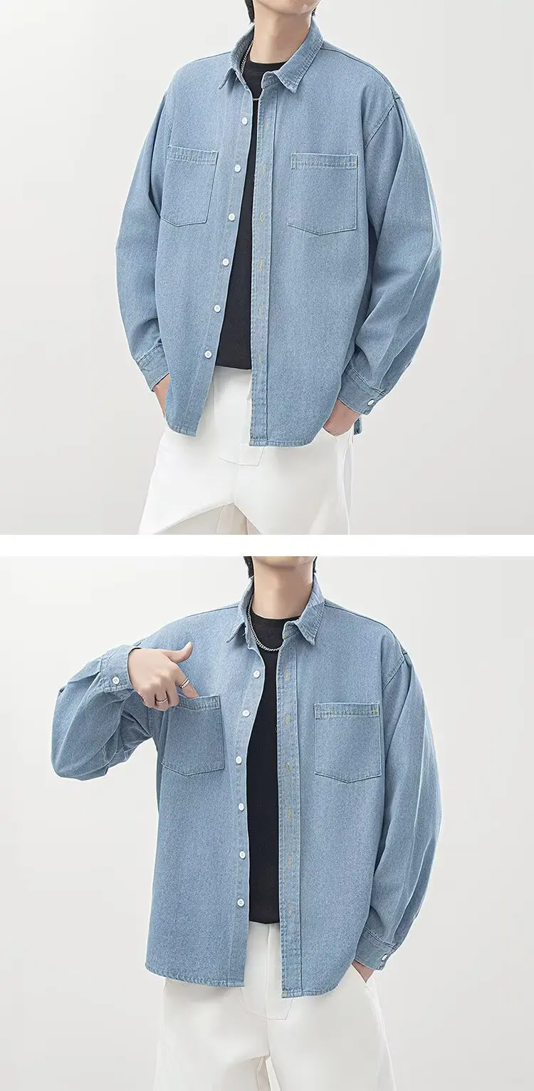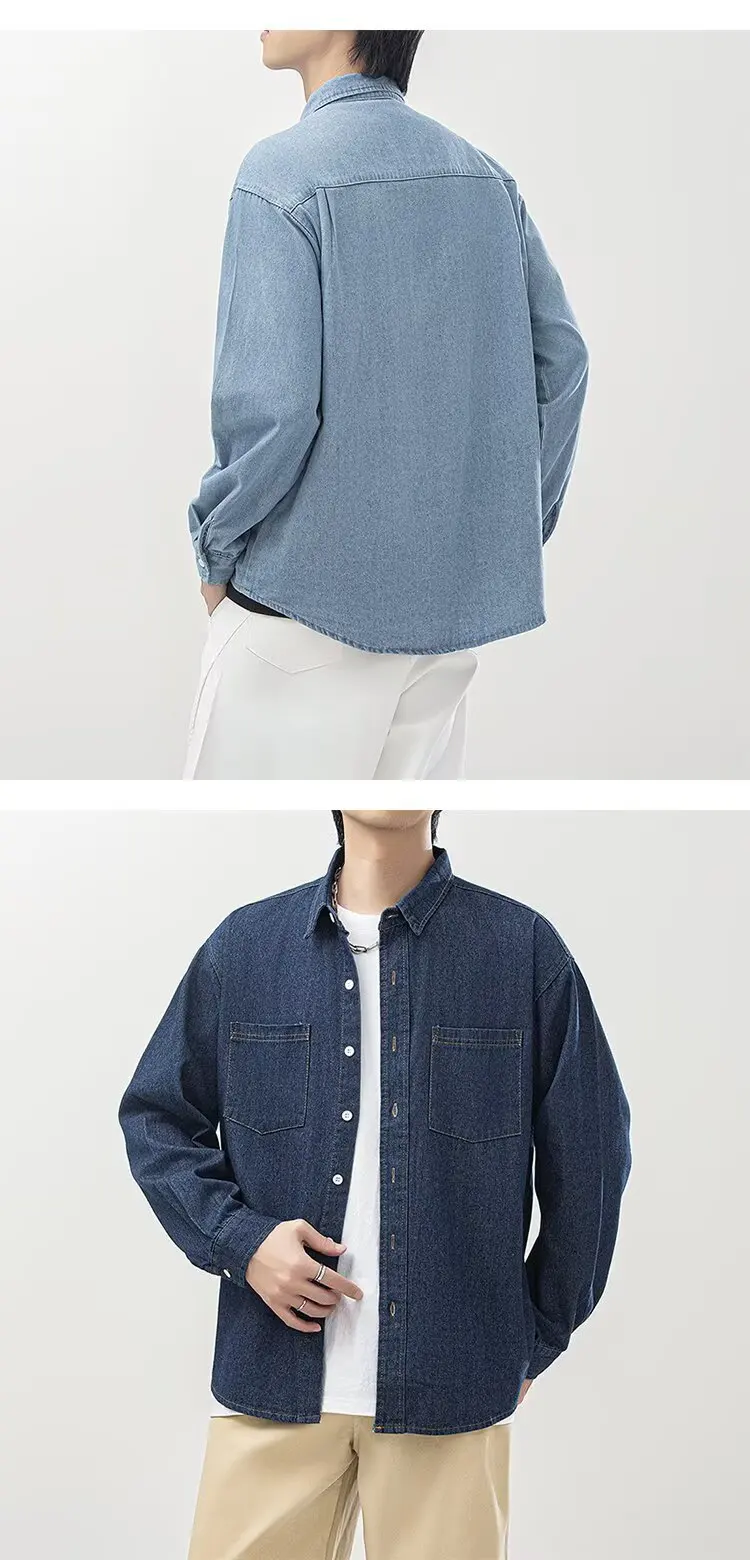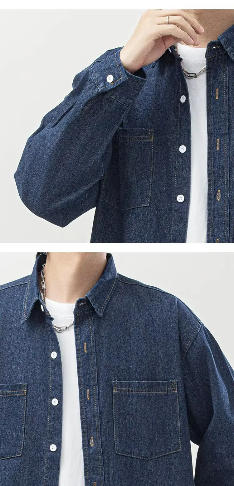 HEARUJOY - Mens Womens Spring Autumn New Solid Color Casual Denim Shirt American Retro Couples Fashion Loose Button Down Outerwear Premium