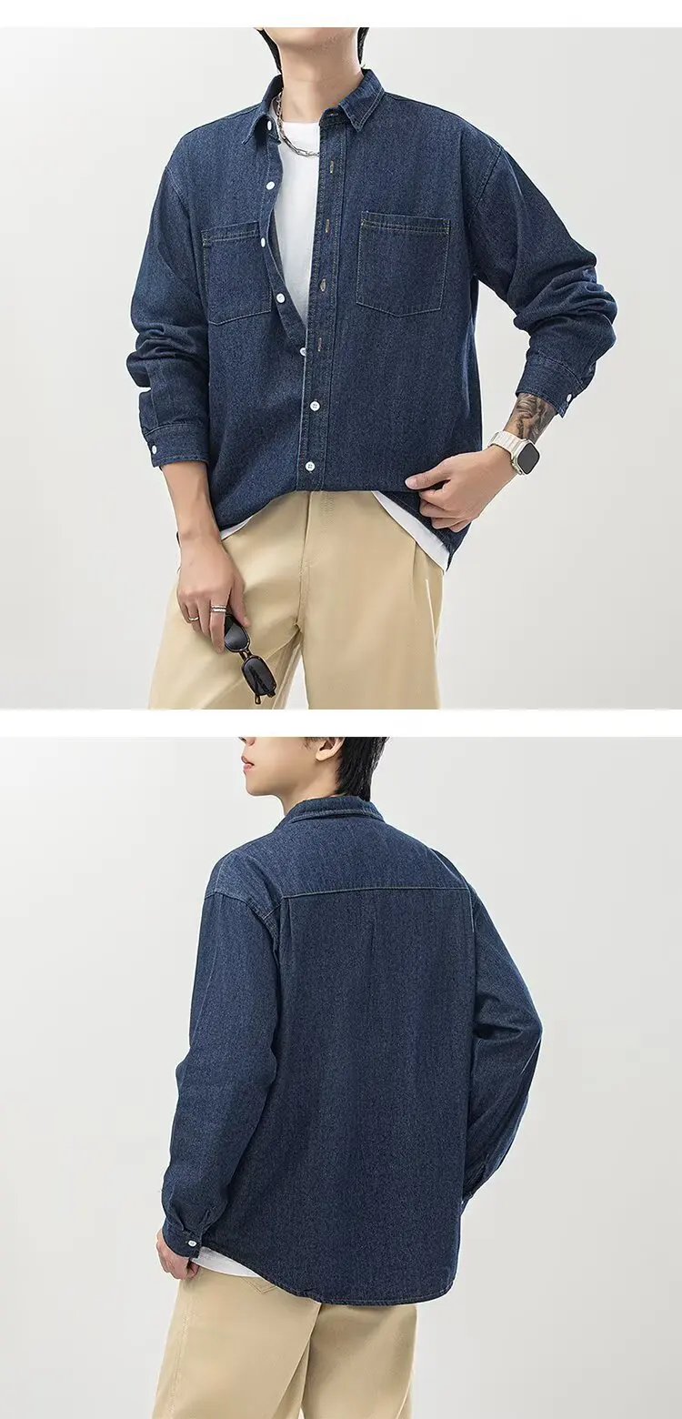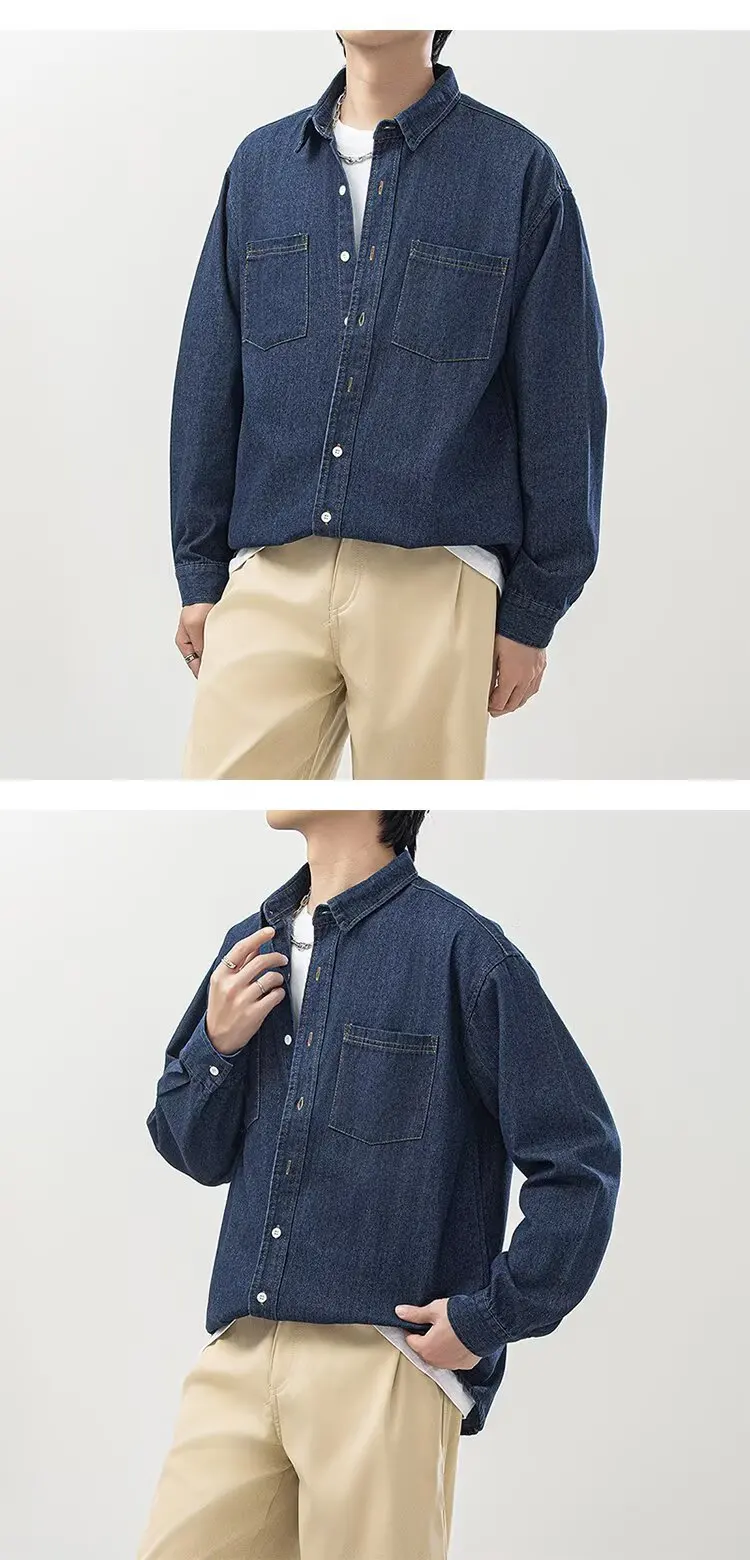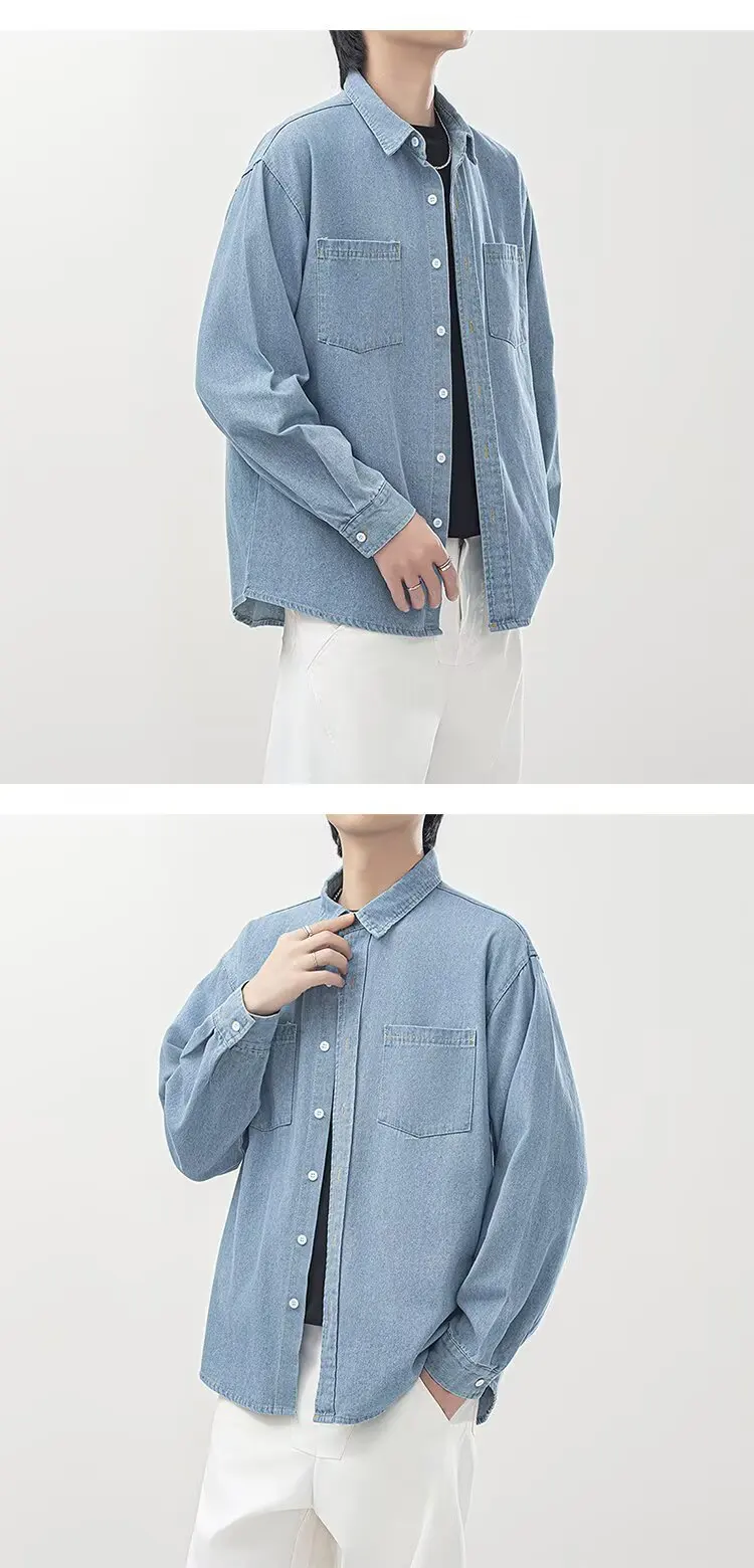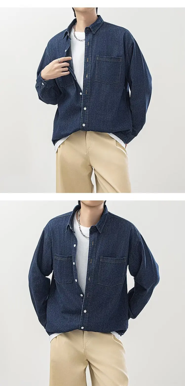 HEARUJOY - Mens Womens Spring Autumn New Solid Color Casual Denim Shirt American Retro Couples Fashion Loose Button Down Outerwear Premium