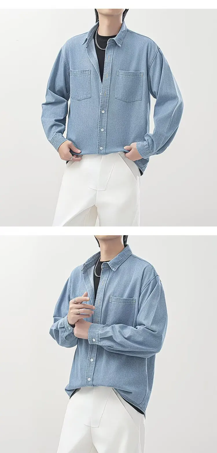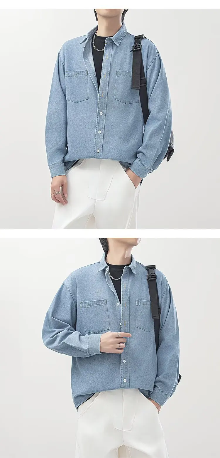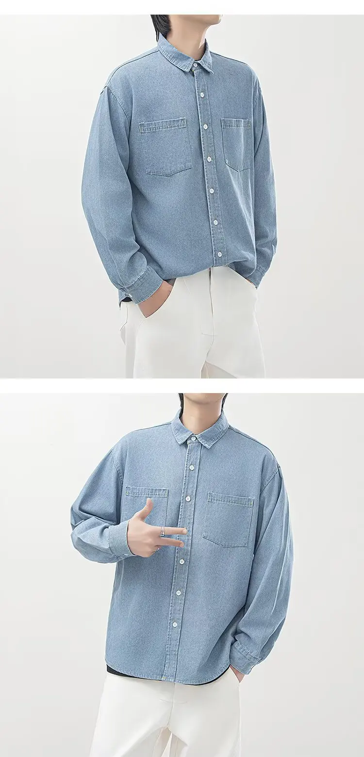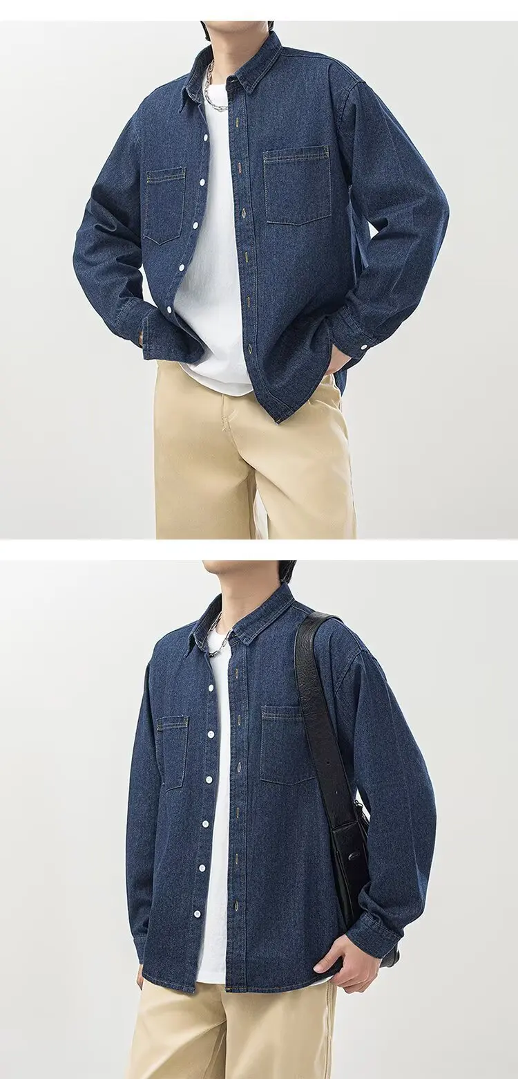 HEARUJOY - Mens Womens Spring Autumn New Solid Color Casual Denim Shirt American Retro Couples Fashion Loose Button Down Outerwear Premium
