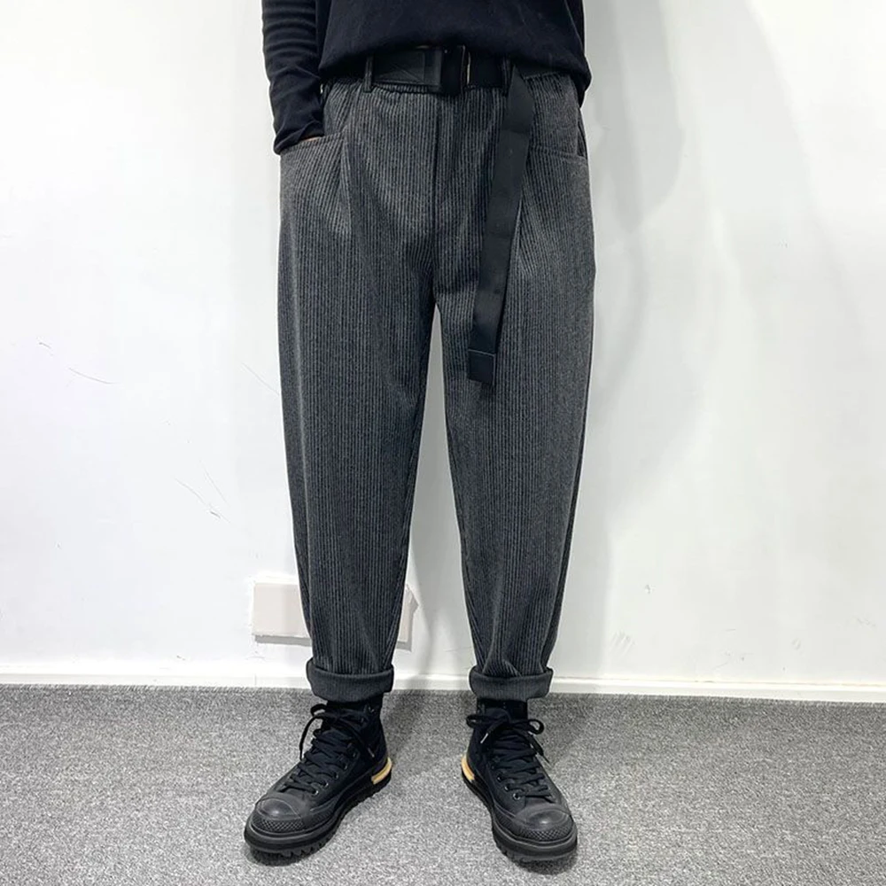 Hearujoy Mens Y2k Pants Autumn Fashion Simple Retro Corduroy Pants Slightly Elastic Loose Harem Workwear Versatile Casual Pants Men