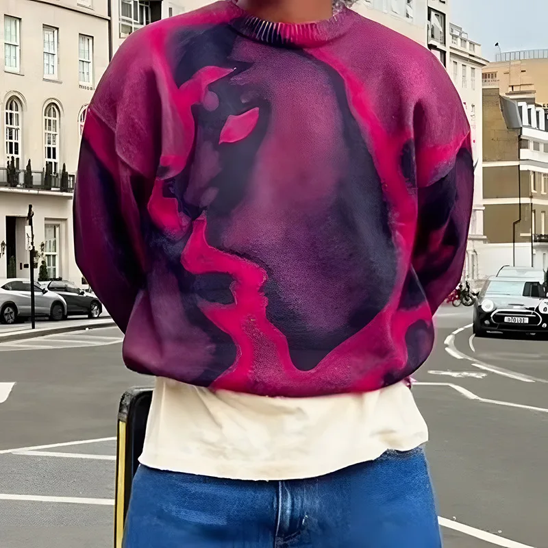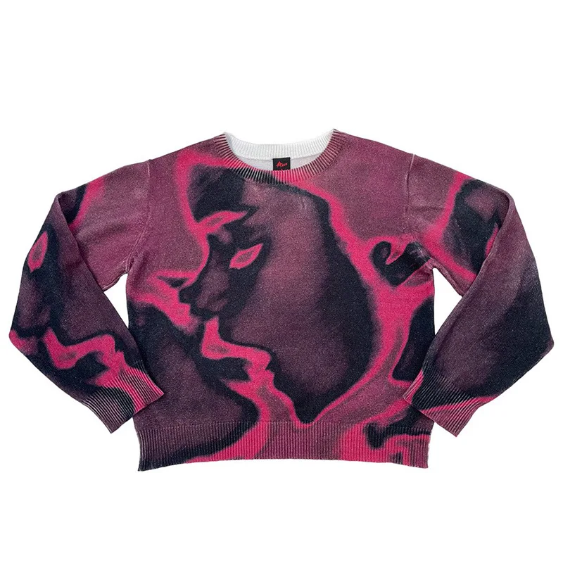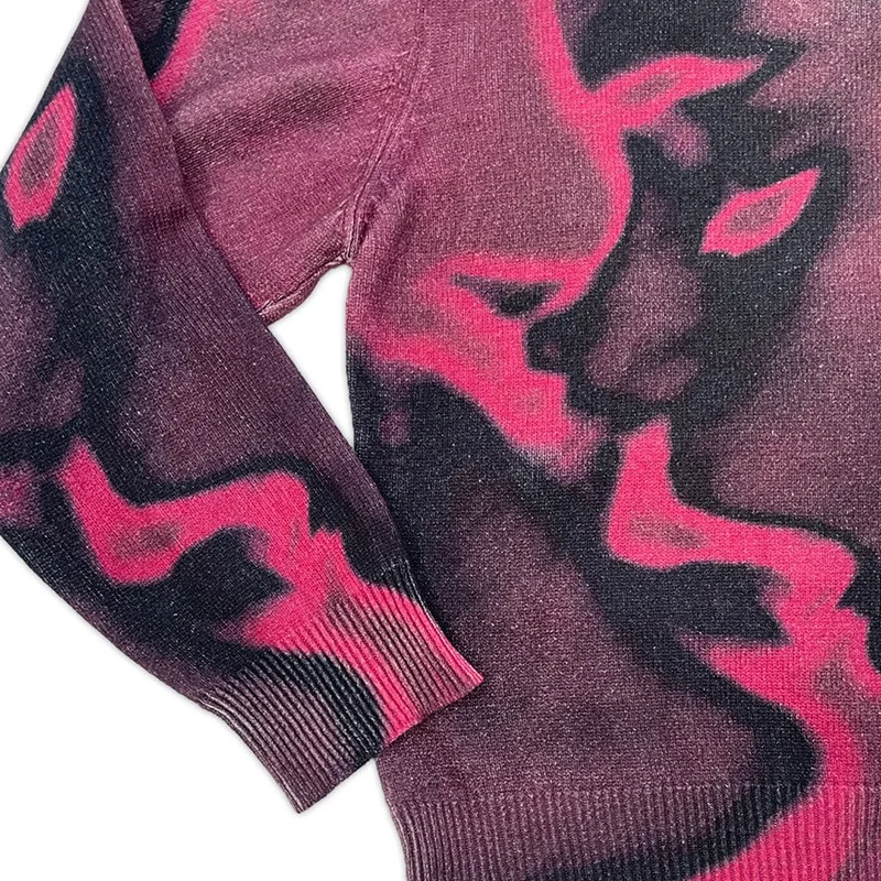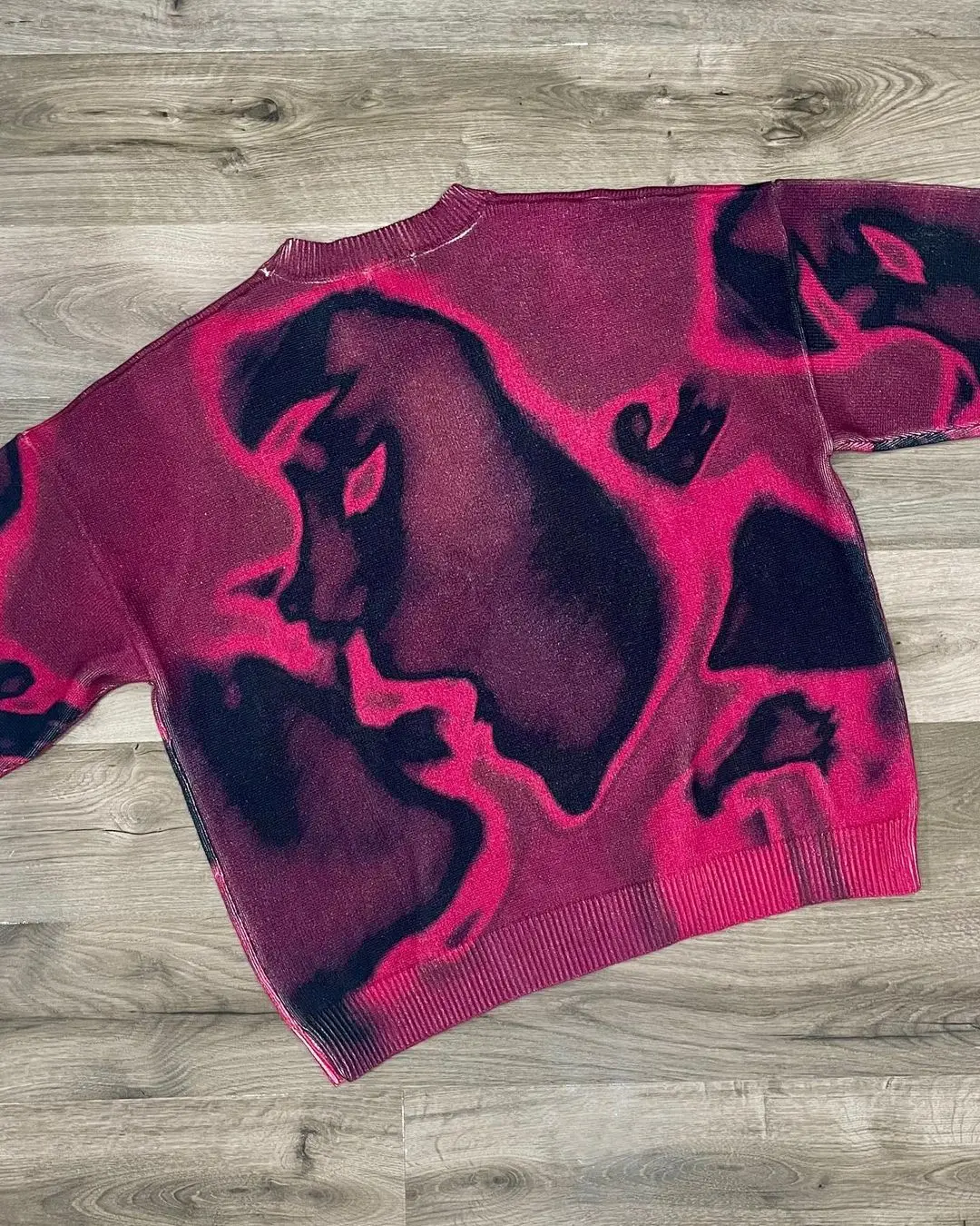 Hearujoy merican Street Figure Geometric Printing Loose Harajuku Couple Knitted Sweater Y2k Retro Rose Red Casual Pullover Sweater