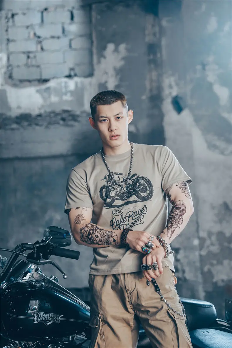 Hearujoy Motorcycle Clothing Fashion Top Rock Streetwear Muscles T Shirt for Men Hip Hop Embroidery Graphic Aesthetic 5xl Man Tee Shirts