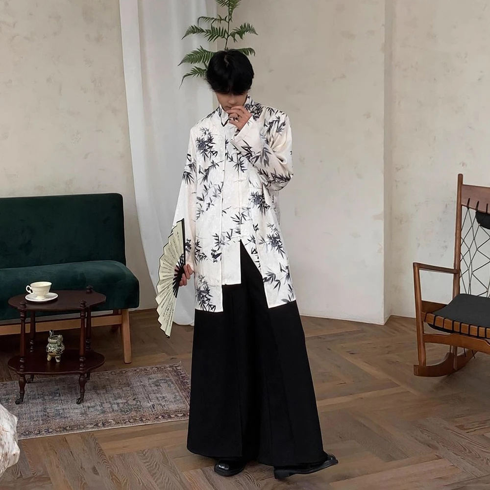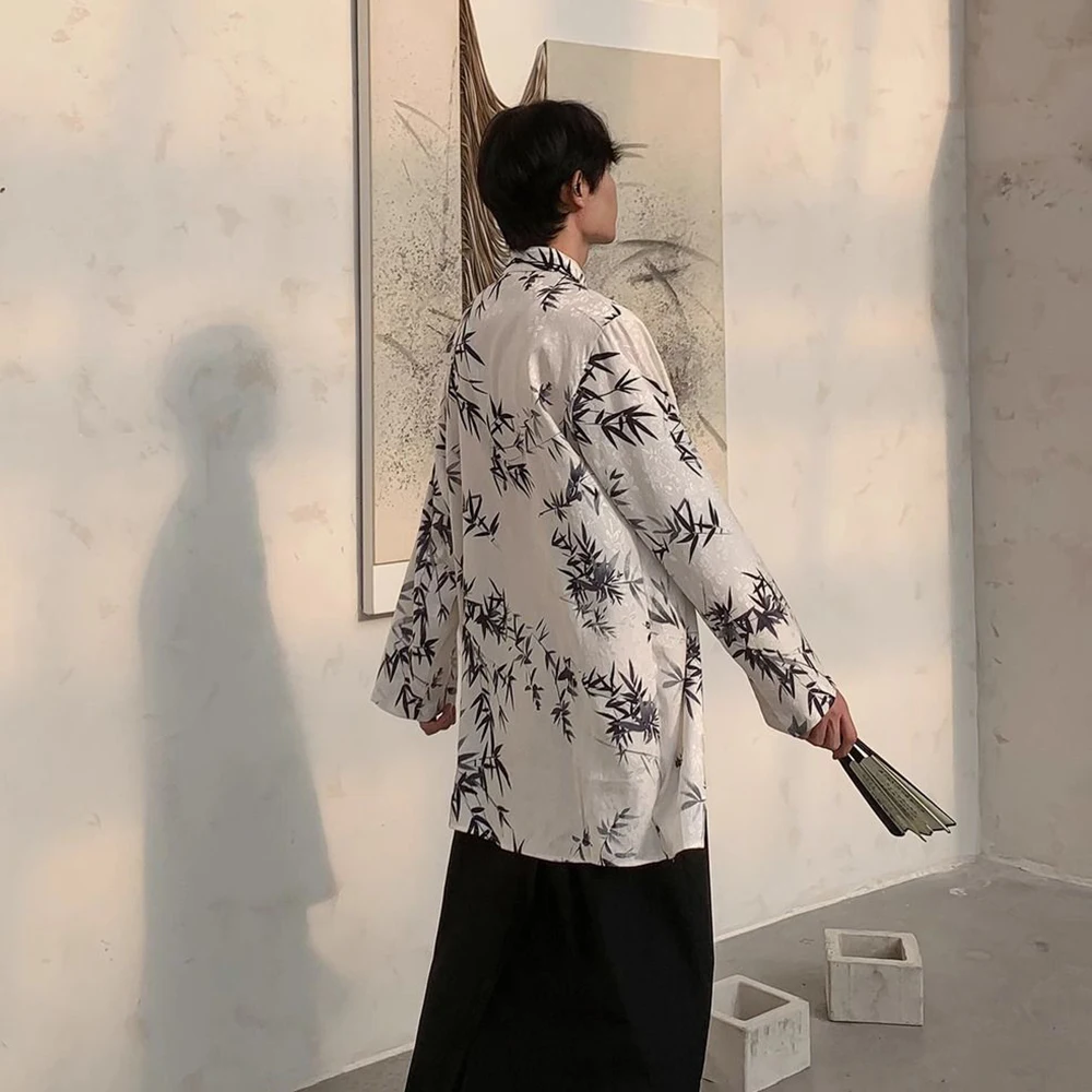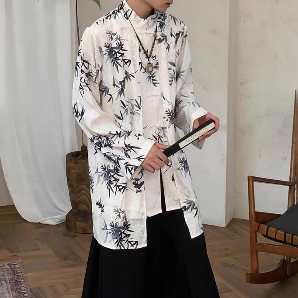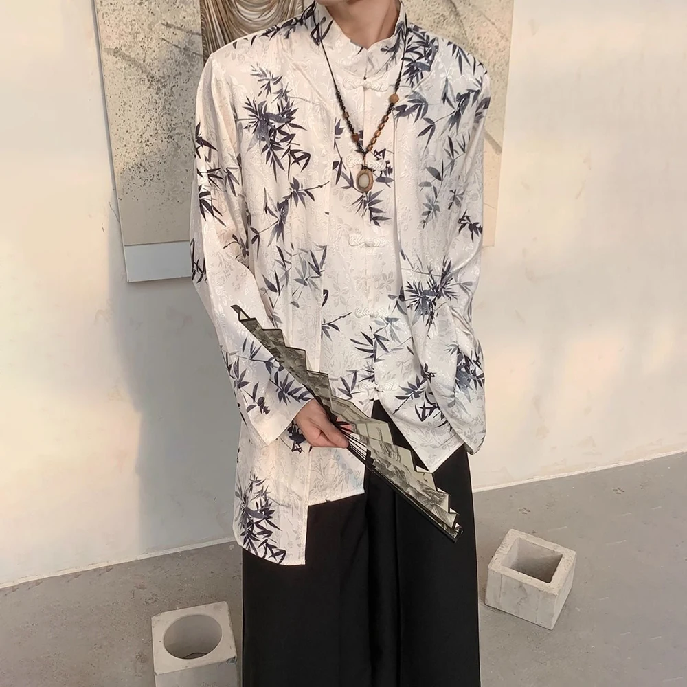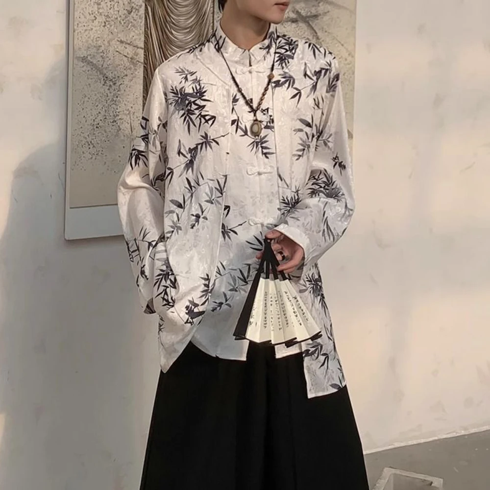 HEARUJOY - New Autumn And Winter Chinese Style Stand-Up Collar Button Bamboo Shirt Unisex Fashion Casual Loose Printed Long-Sleeved Shirt