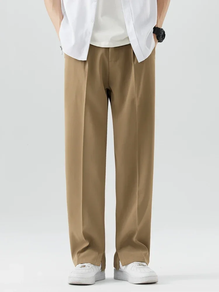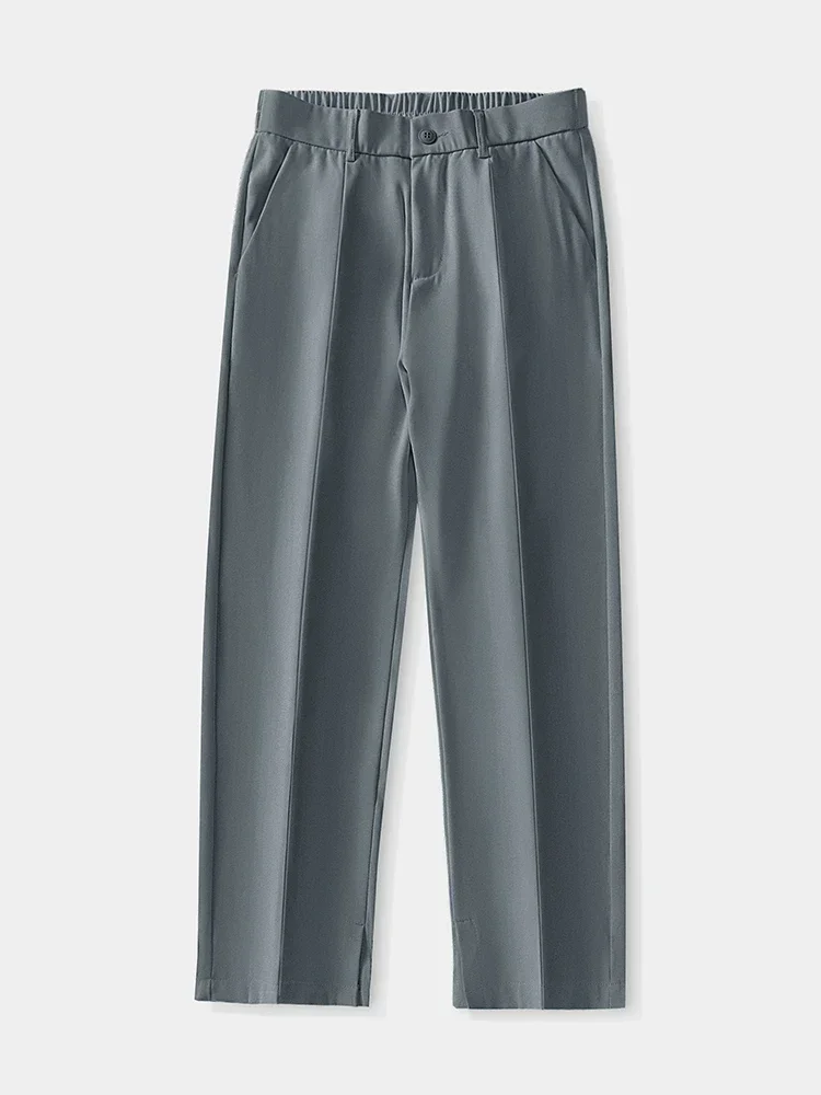 HEARUJOY - New Autumn Casual Pants Men Breathable Korean Fashion Pendant Split Elastic Waist Slacks Straight Loose Suit Trousers