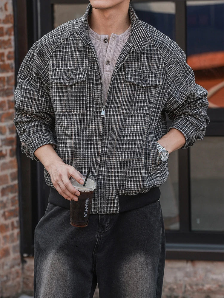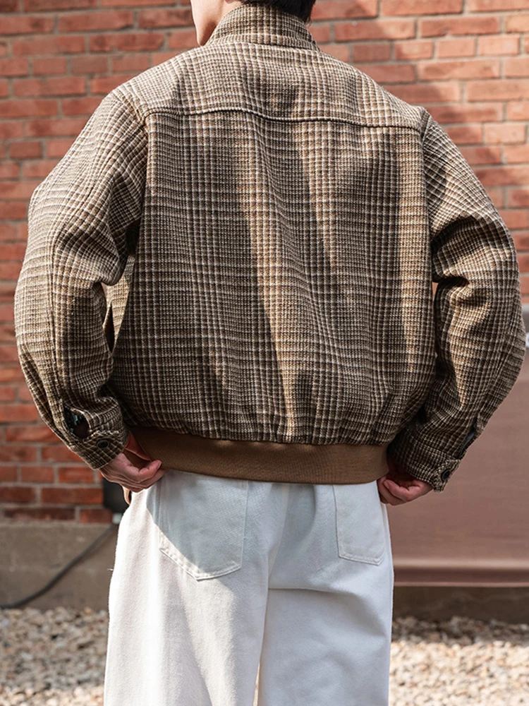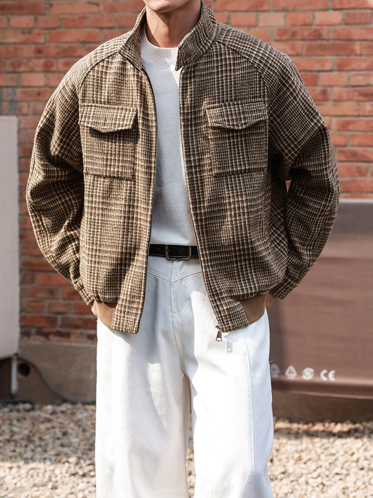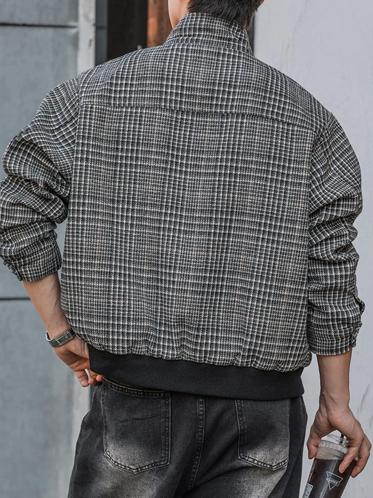 HEARUJOY - New Casual Zip-up Stand Collar Men's Jackets 2025 Autumn Winter Outdoor Fashion Houndstooth Jacket Coats men Stylish Outerwear