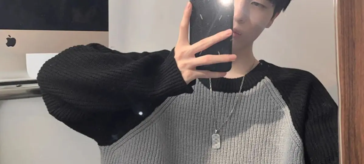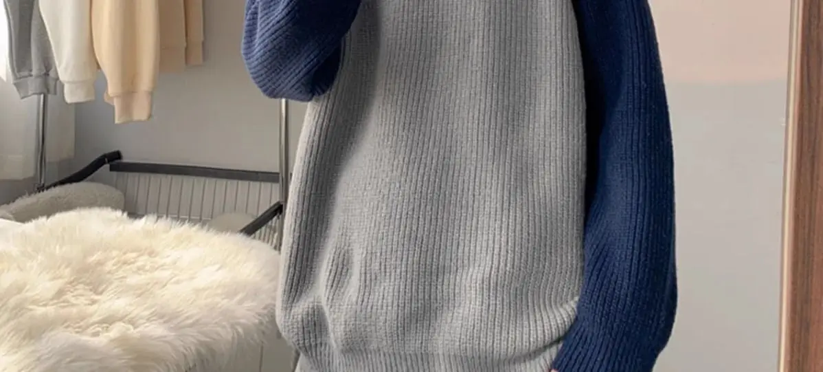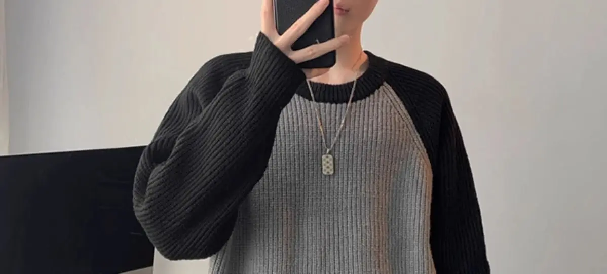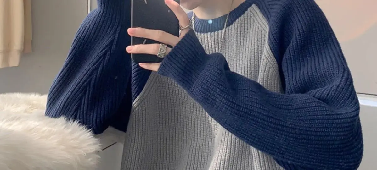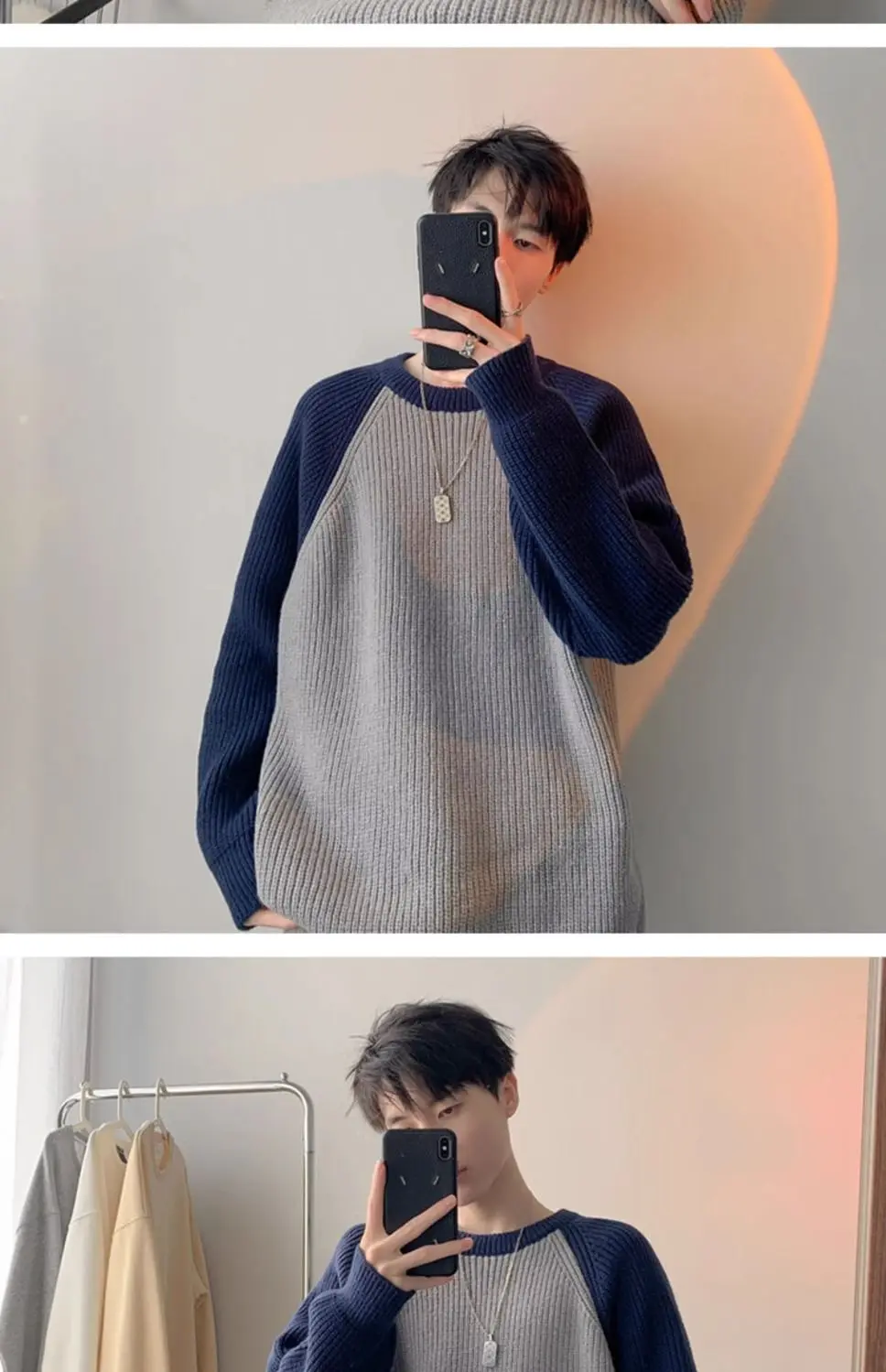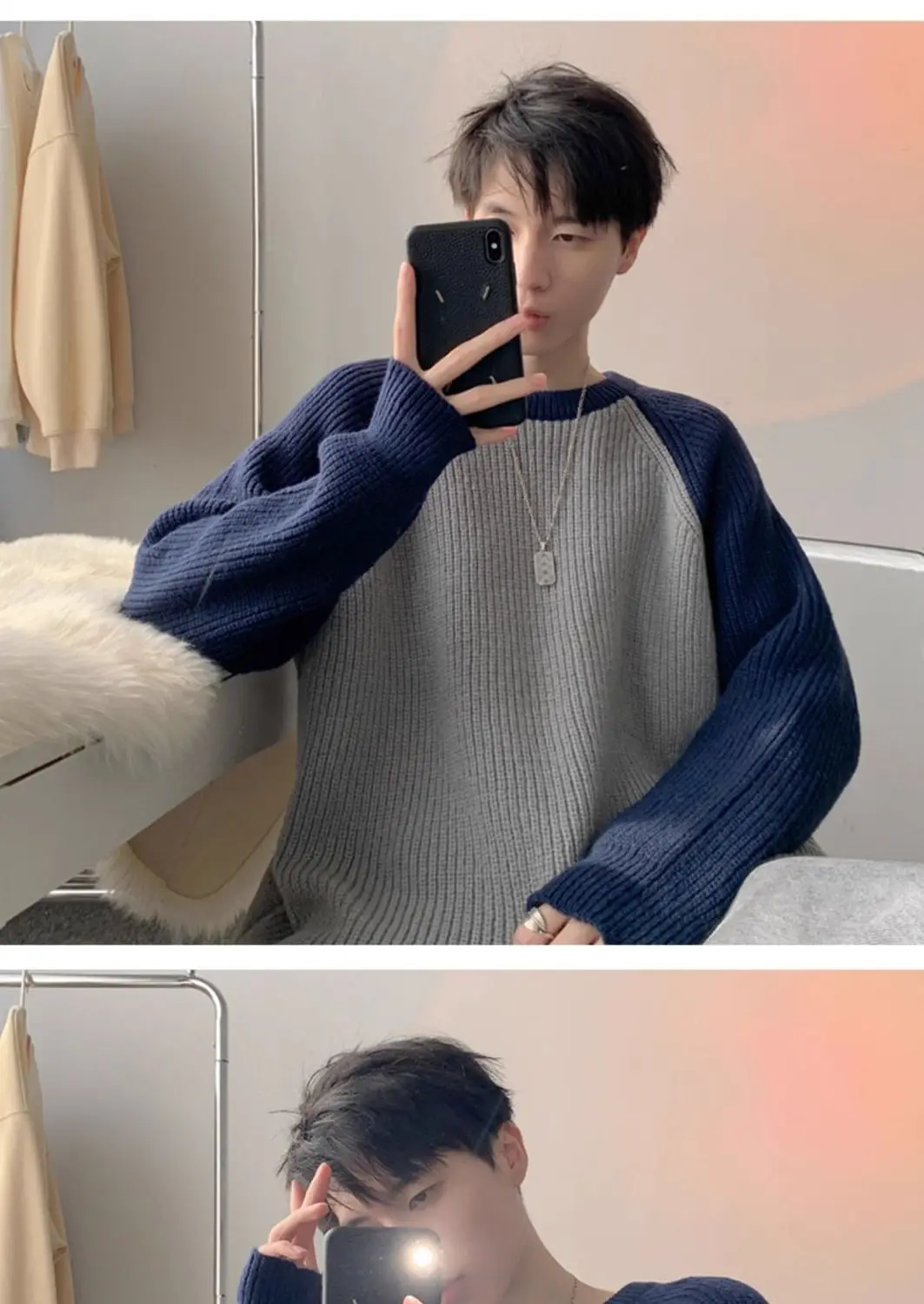 Hearujoy New Hong Kong Style Sweater Men's Trendy Brand Couple's Loose Knit Sweater Color Blocked Raglan Sleeve Sweater Thick Outerwear