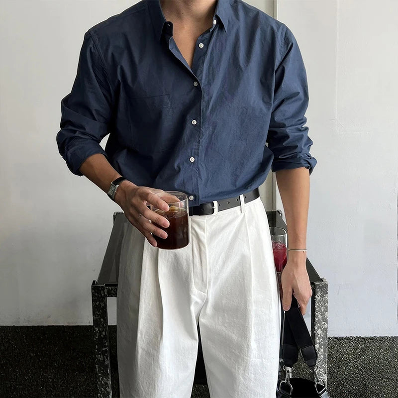 HEARUJOY - New Luxury Textured Business Men Shirts Leisure Solid Color Long Sleeve Korean Popular Men's Clothing High Quality Cardigan Tops