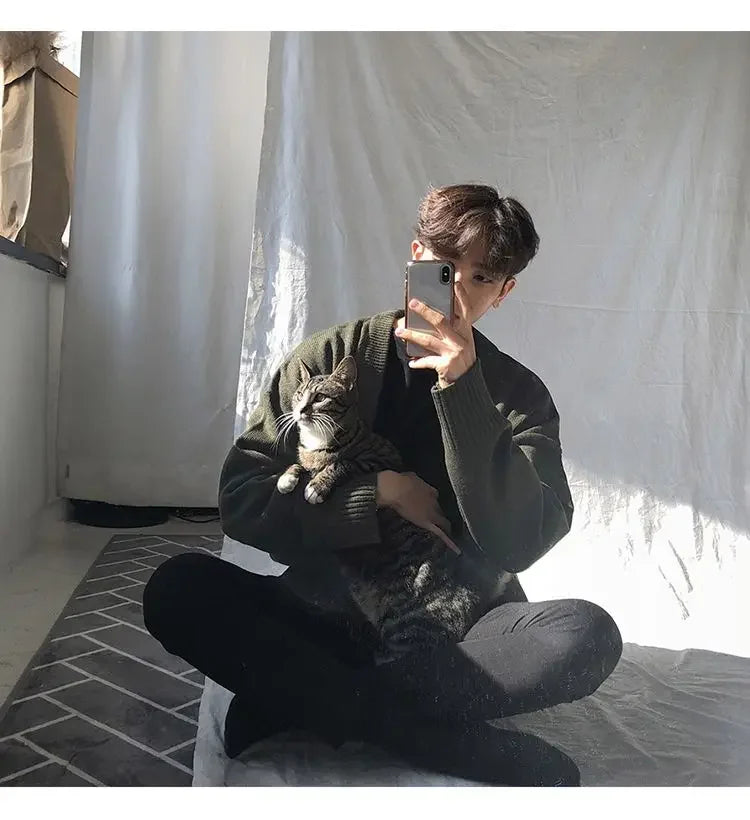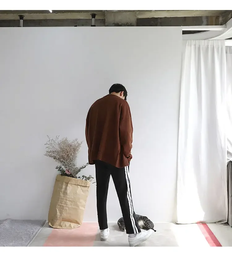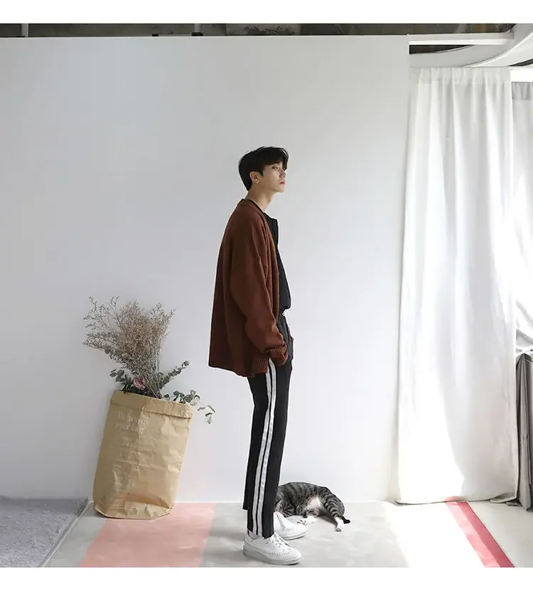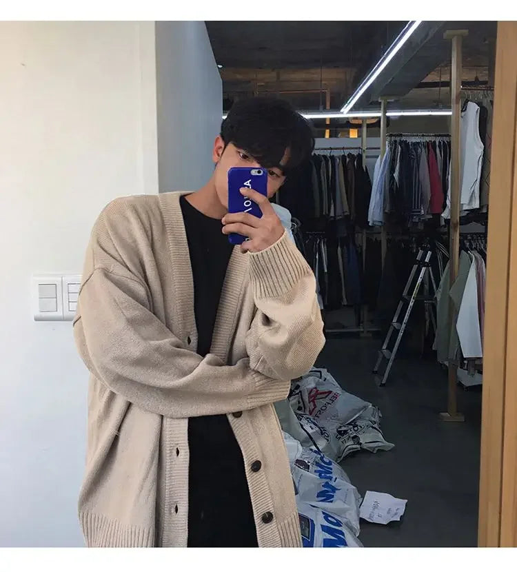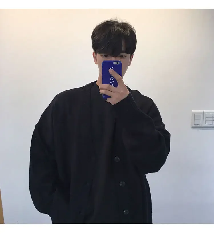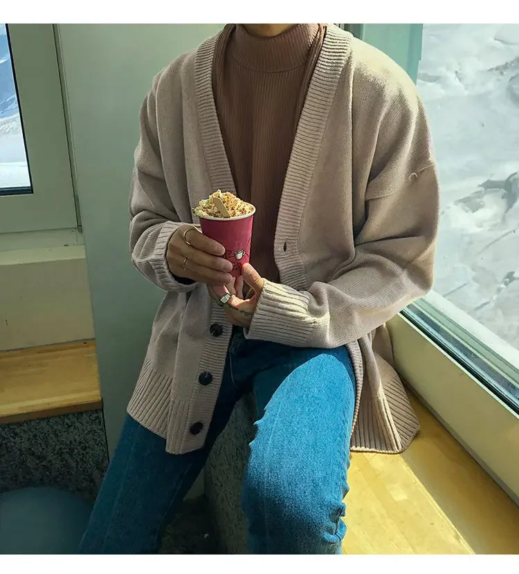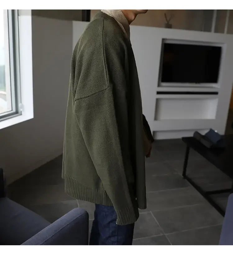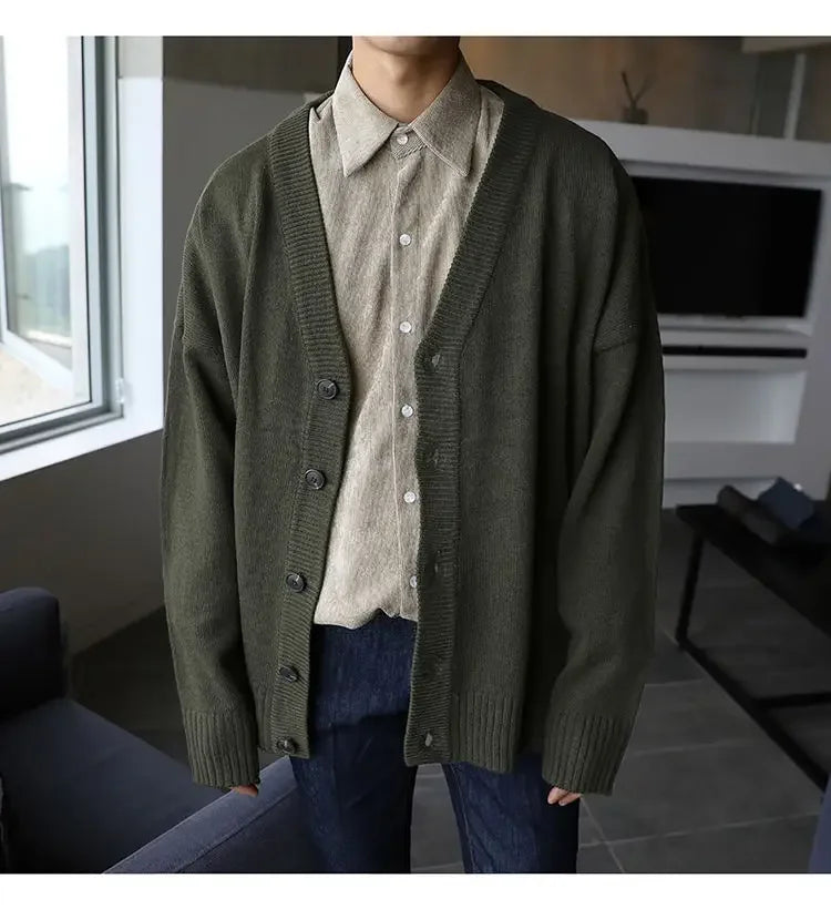 HEARUJOY - New Men's Clothing V-neck Single-breasted Men's Wear Knitted Sweater Loose Solid Color Knitted Cardigan Coat Autumn D03