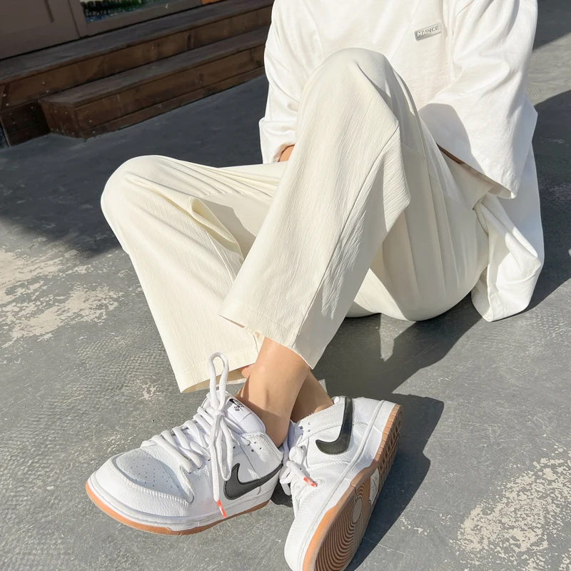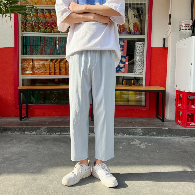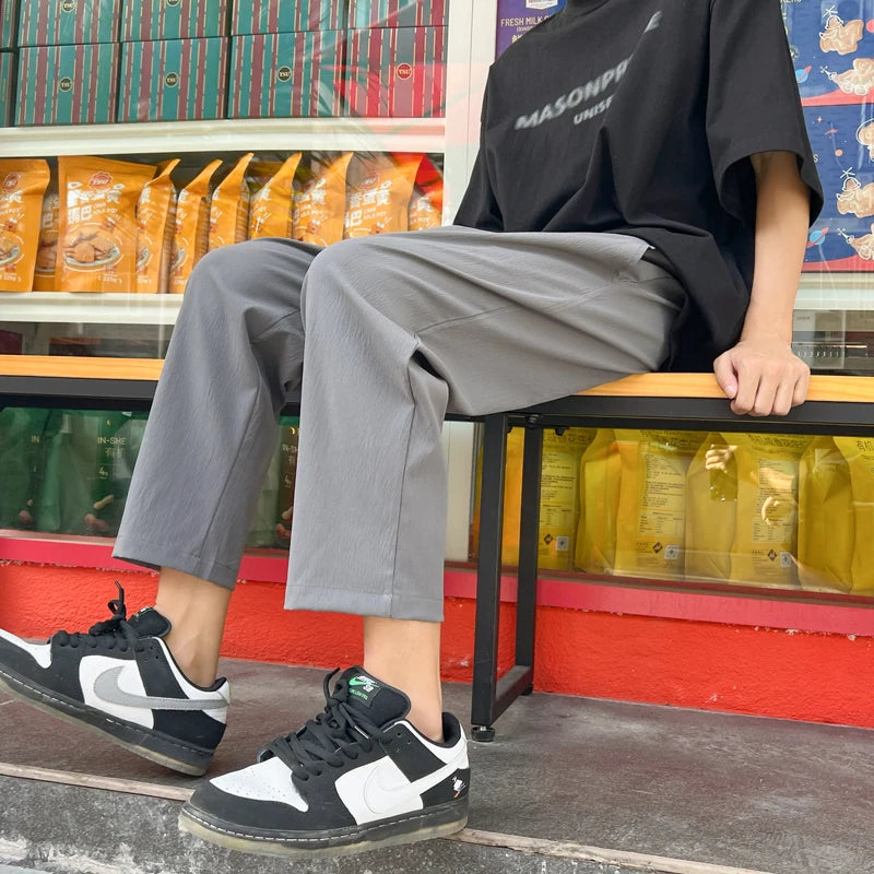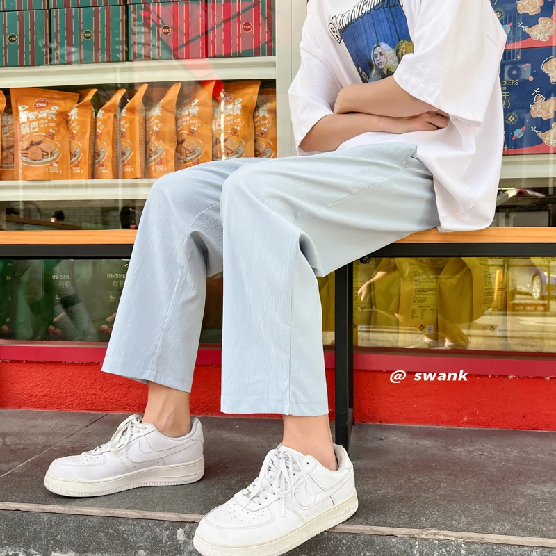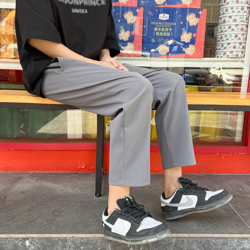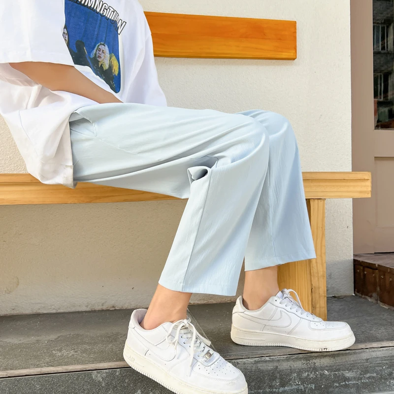 Hearujoy new men's elastic waist casual pants straight thin section boys street loose ice silk pants large size wide leg pants S-4XL