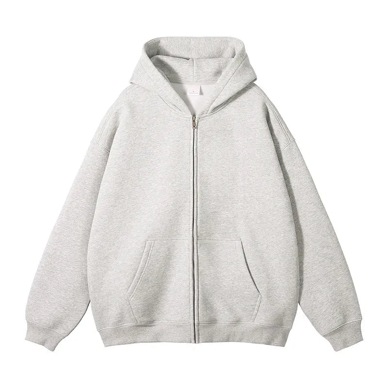 HEARUJOY - New Men's Hoodies Sweatshirts Zipper Hoodie Solid Color Hip Hop Mens Hooded Jacket Loose Track Hoodie Jacket Coat Streetwear