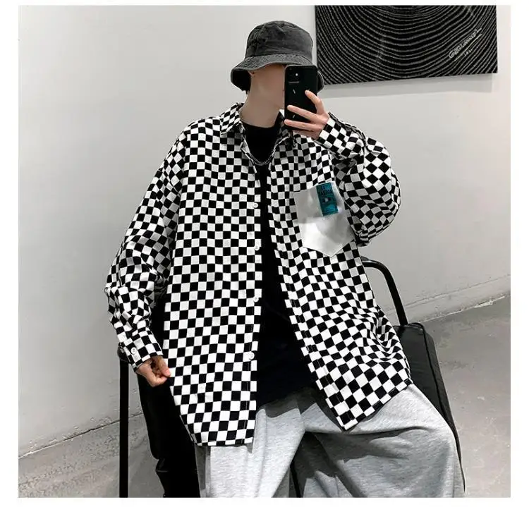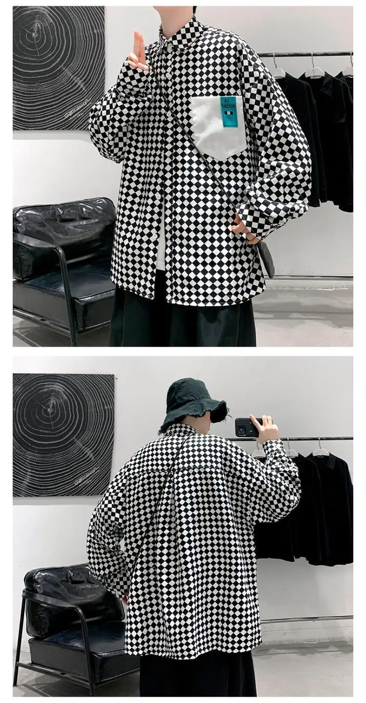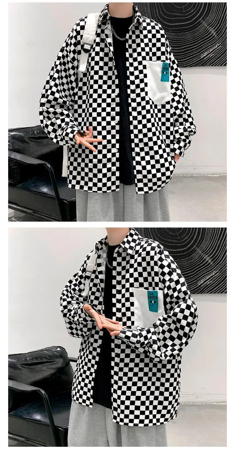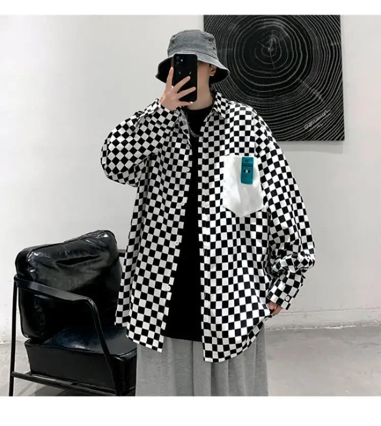 Hearujoy New Plaid Loose Casual Long Sleeved Shirt for Men Trendy Instagram Collar Top Clothes Stylish Jacket for Men