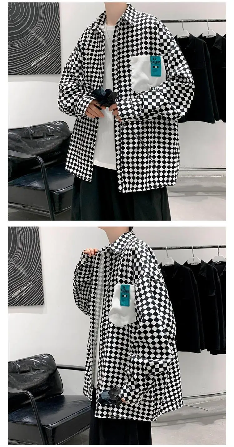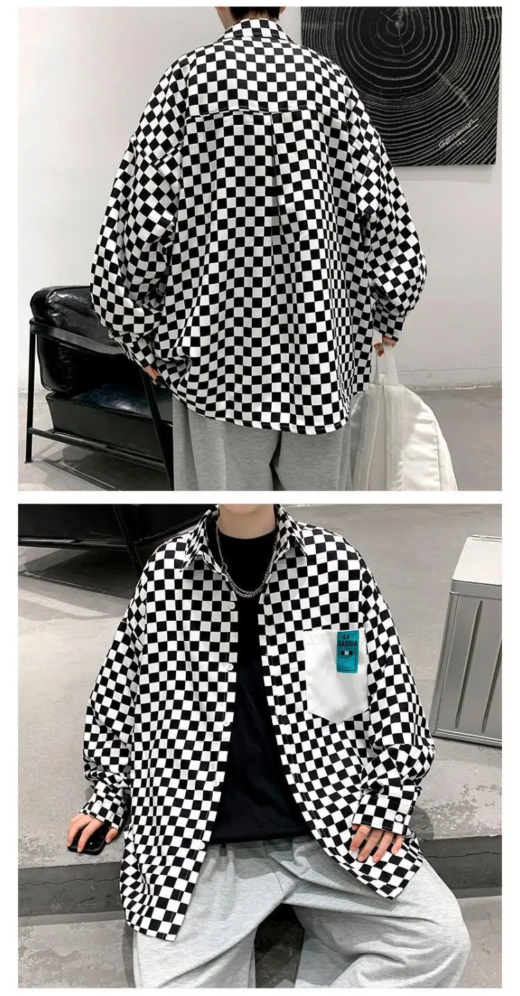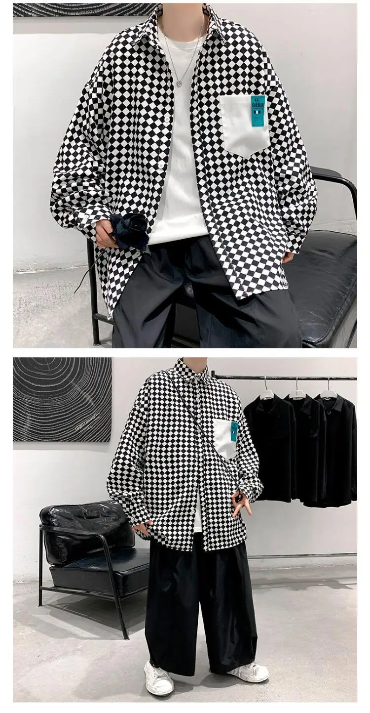 Hearujoy New Plaid Loose Casual Long Sleeved Shirt for Men Trendy Instagram Collar Top Clothes Stylish Jacket for Men