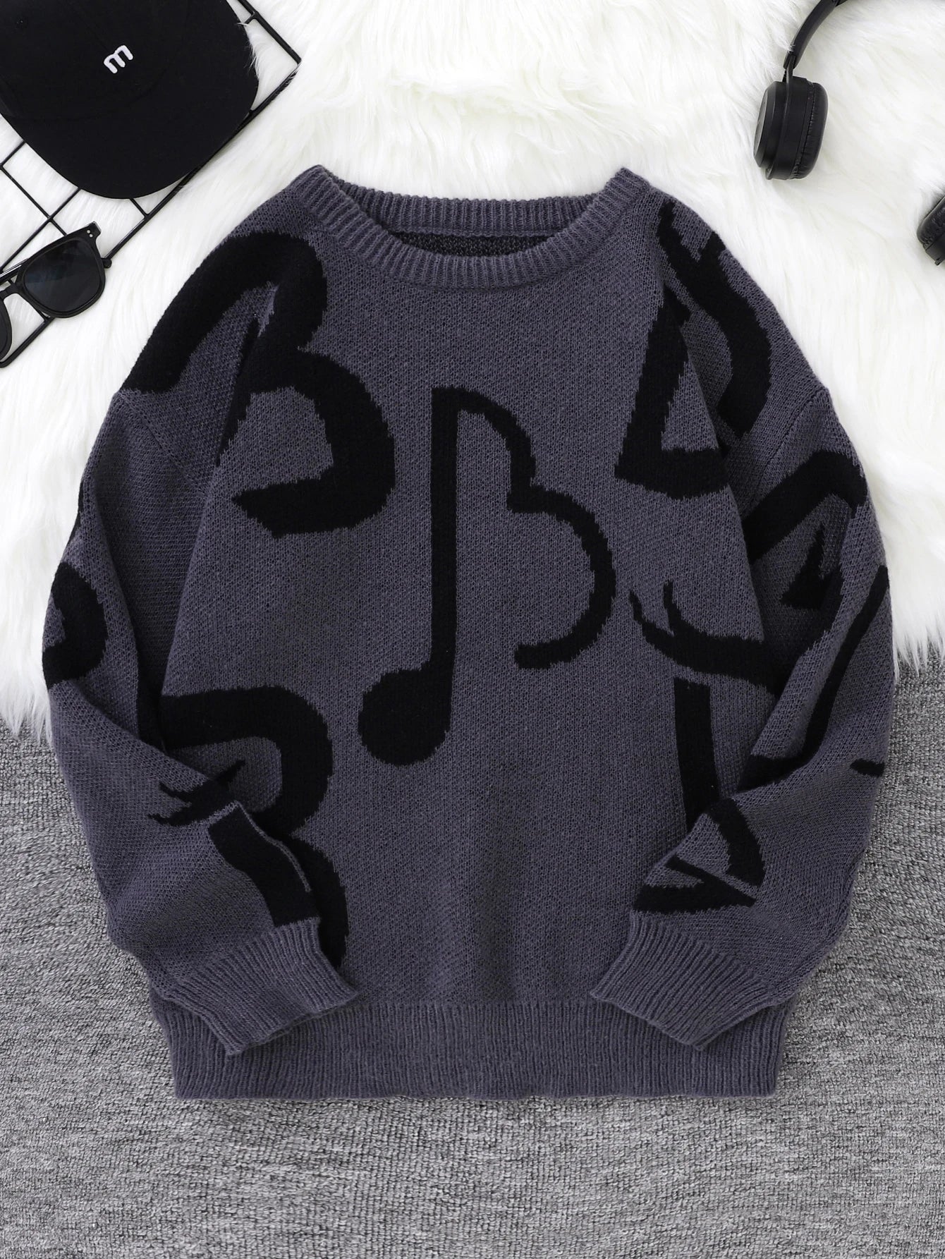 HEARUJOY - New Popular Autumn and Winter Letter Note Jacquard Pattern Pullover Sweater Casual Round Neck Contrast Color Knitted Men's Pullover