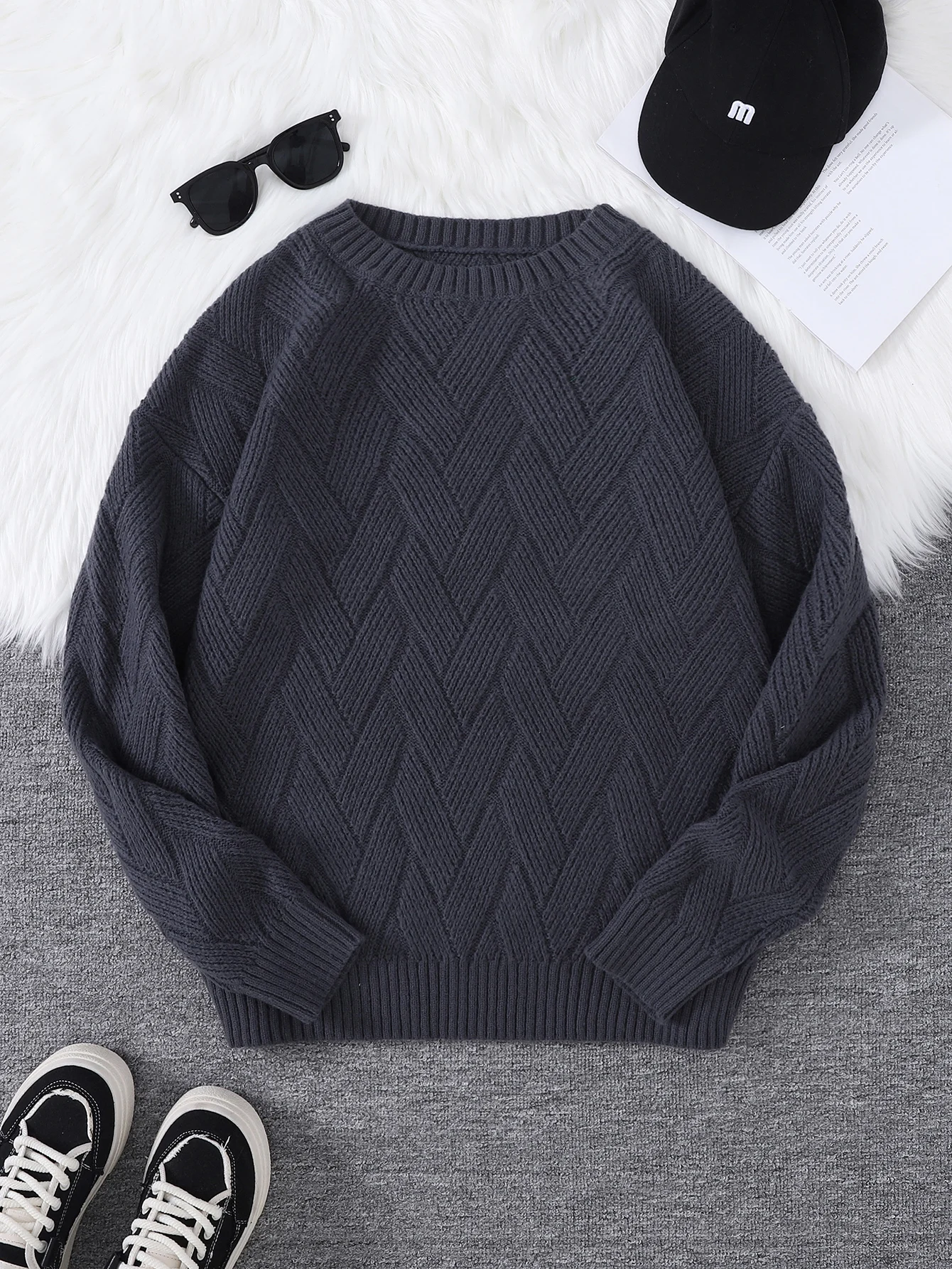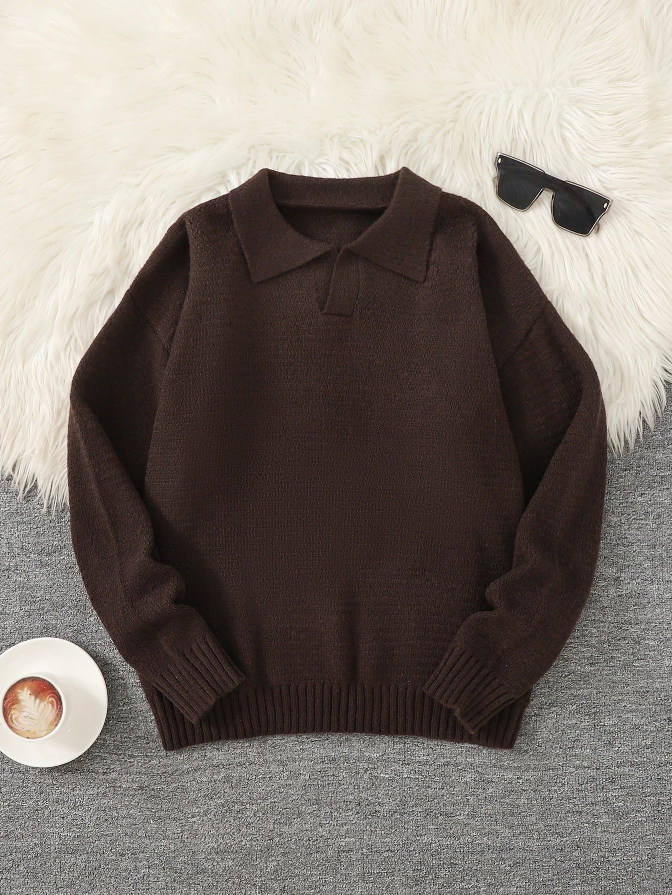 HEARUJOY - New Popular Autumn and Winter Pure Color Polo Collar V-Neck Pullover Sweater Casual Round Neck High-End Textured Knitted Men's Pullover