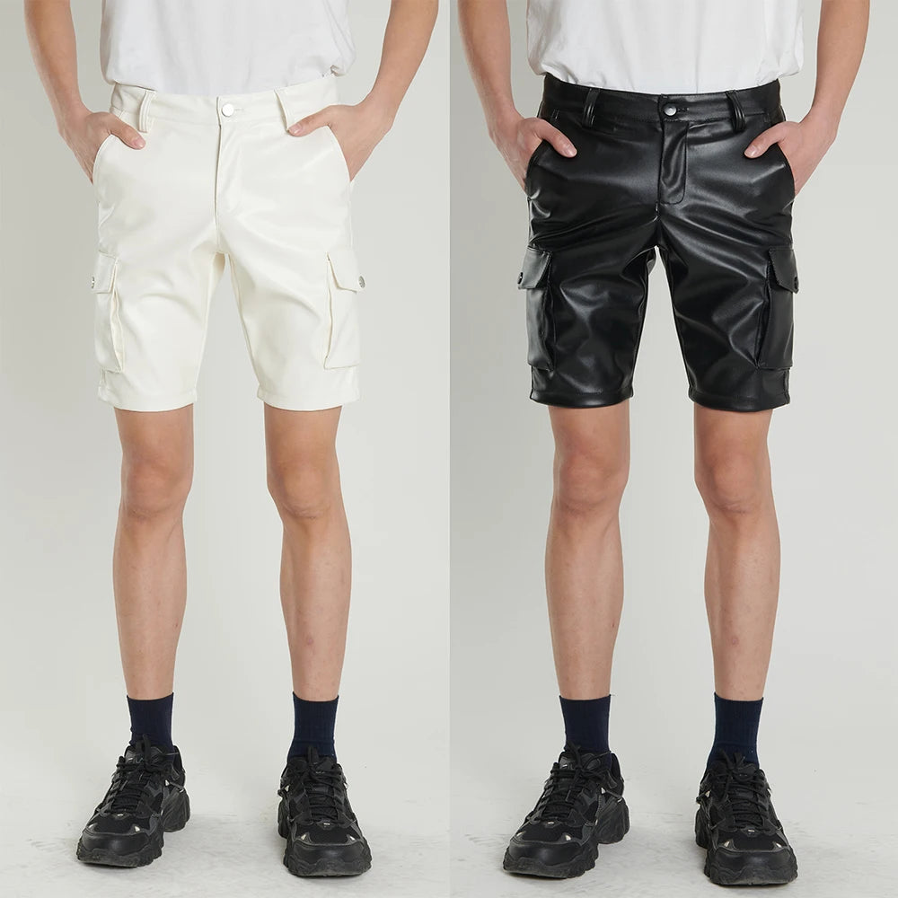 Hearujoy New Solid PU Leather Pants Casual Men's Short Leather Pants Summer Fashion Club Punk Rock Shorts for Men Street LGBT Clothing
