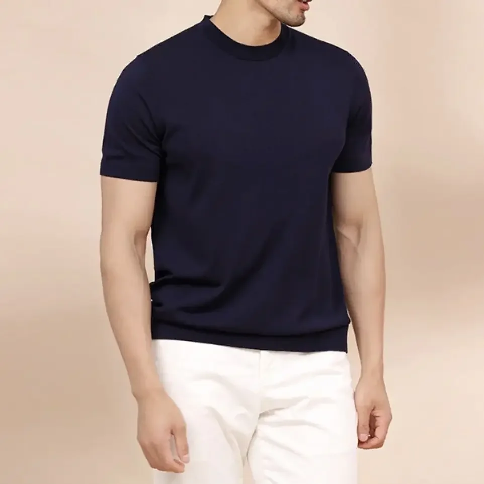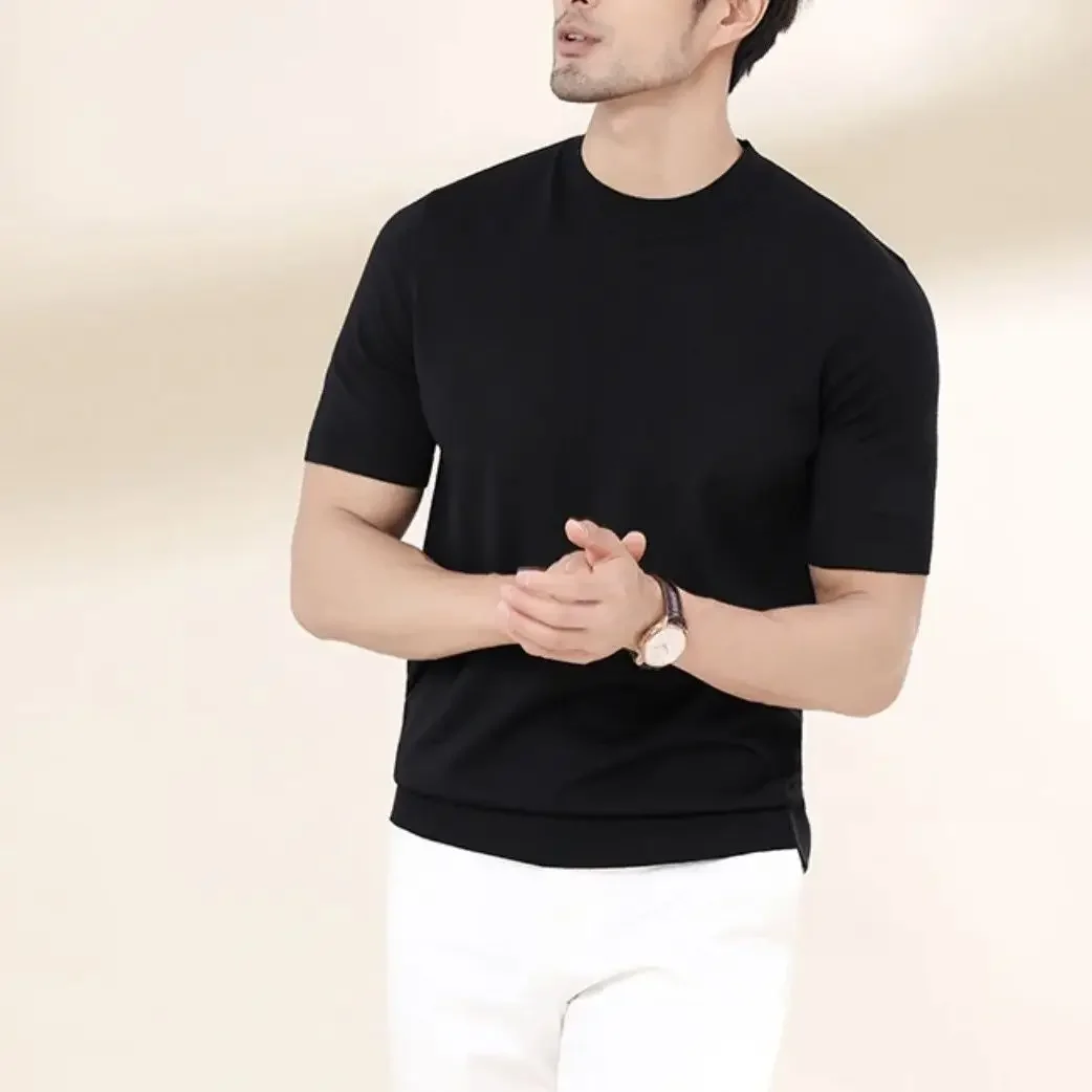 HEARUJOY - New Summer Men Knitted Short-sleeved T-shirt Slim Fit and Slim Solid Color Breathable Knitted Fabric Pullover