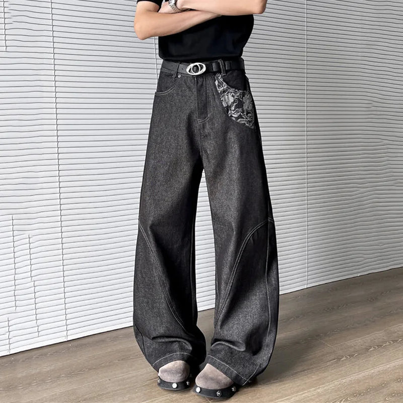 HEARUJOY - New Summer Men's Denim Pants Jacquard Patchwork Contrast Color 2025 Trousers Straight Leg Loose Male Boot-cut Jeans