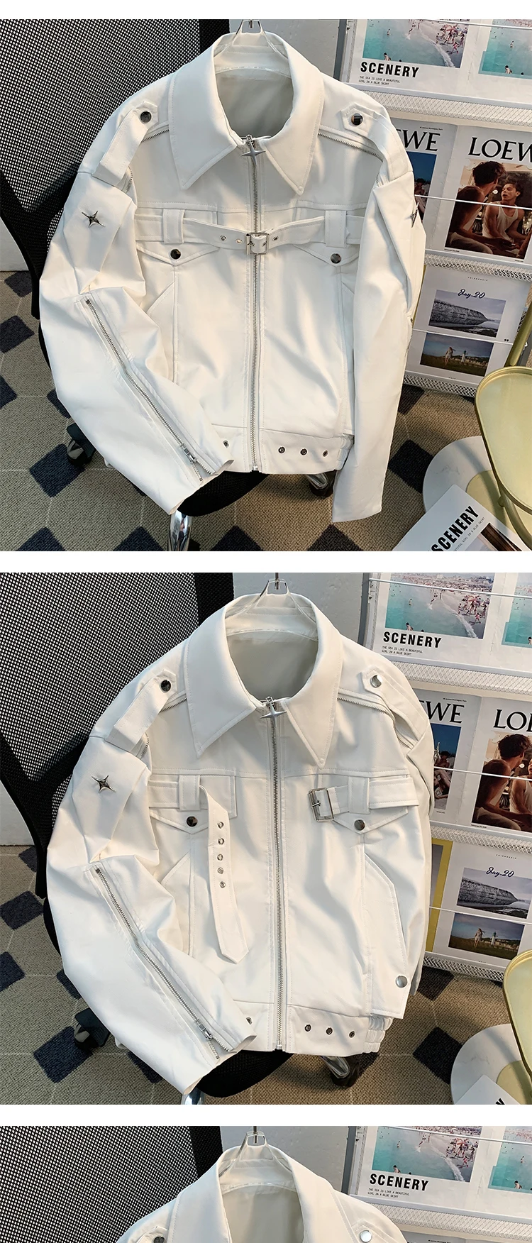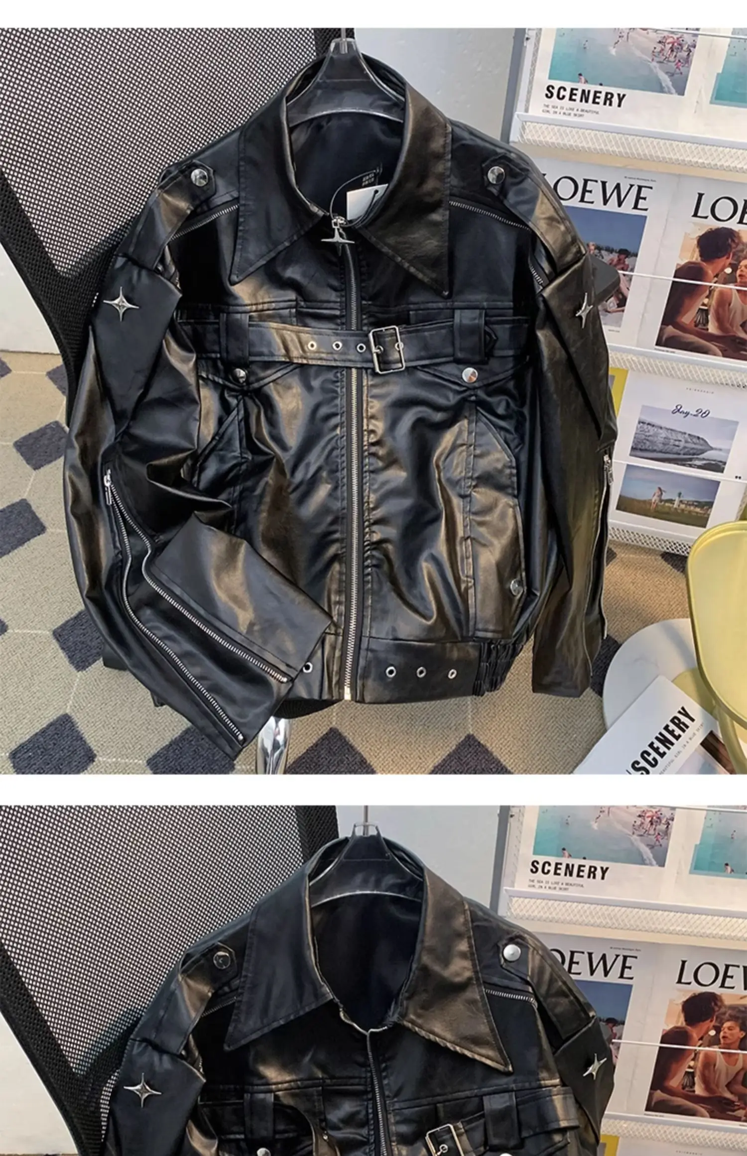 Hearujoy Niche Deconstruction Heavy Industry Leather Jacket Men's Spring Autumn Design Loose Clean Fit Short Motorcycle Leather Jacket