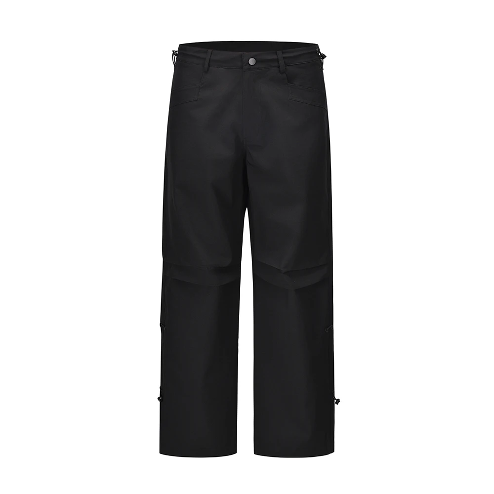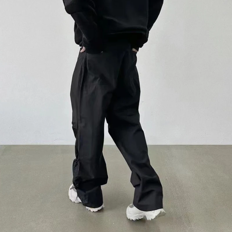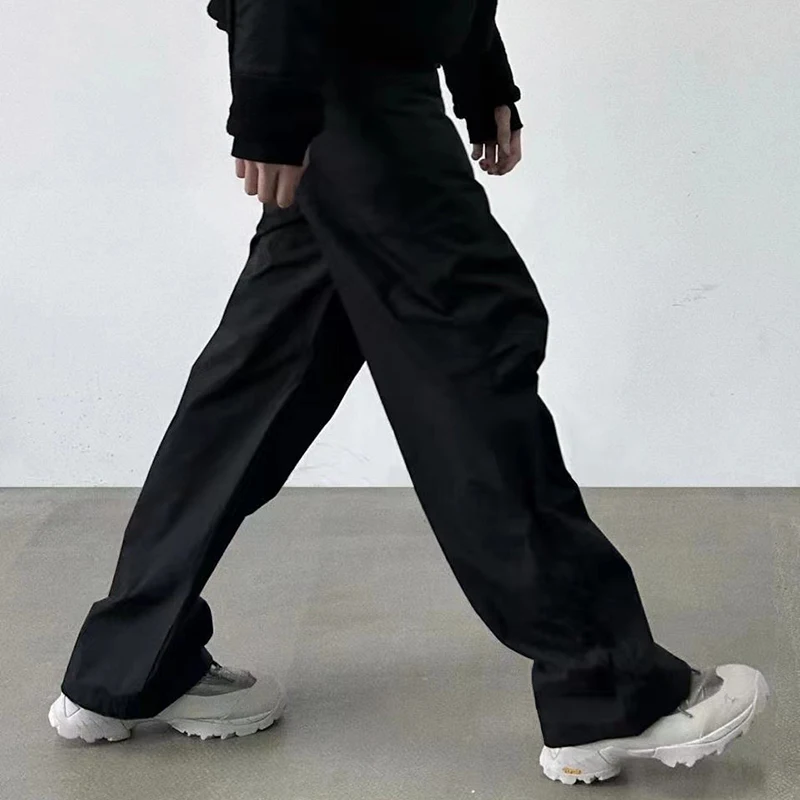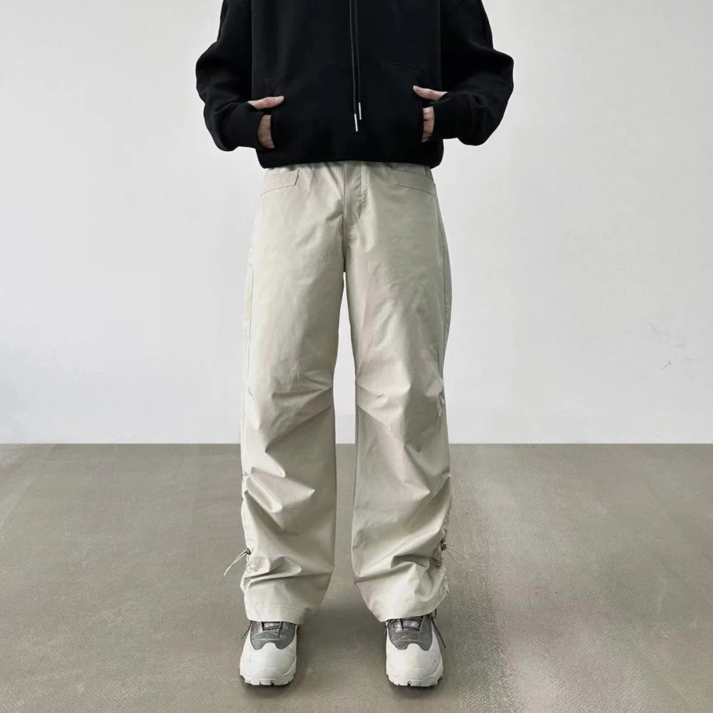 Hearujoy Nylon Quick Dry Pleated Knee Wide Leg Baggy Cargos Men's Drawstring Waist Straight Casual Trousers Y2K Oversized Loose Pants