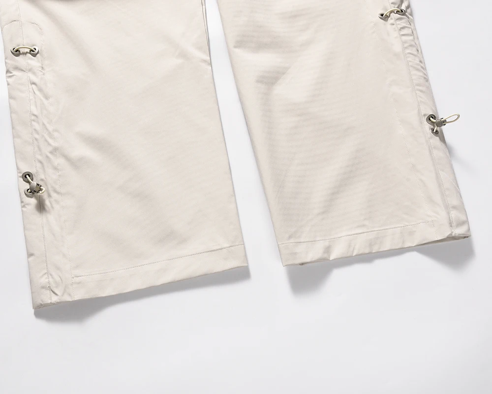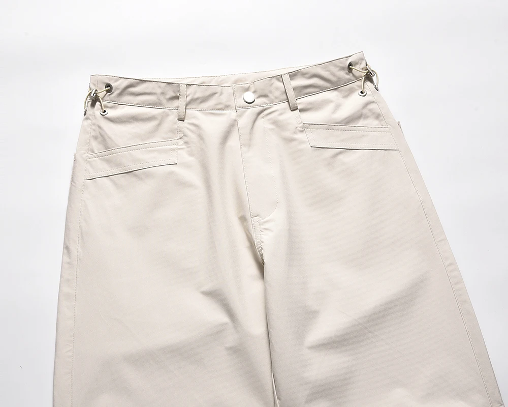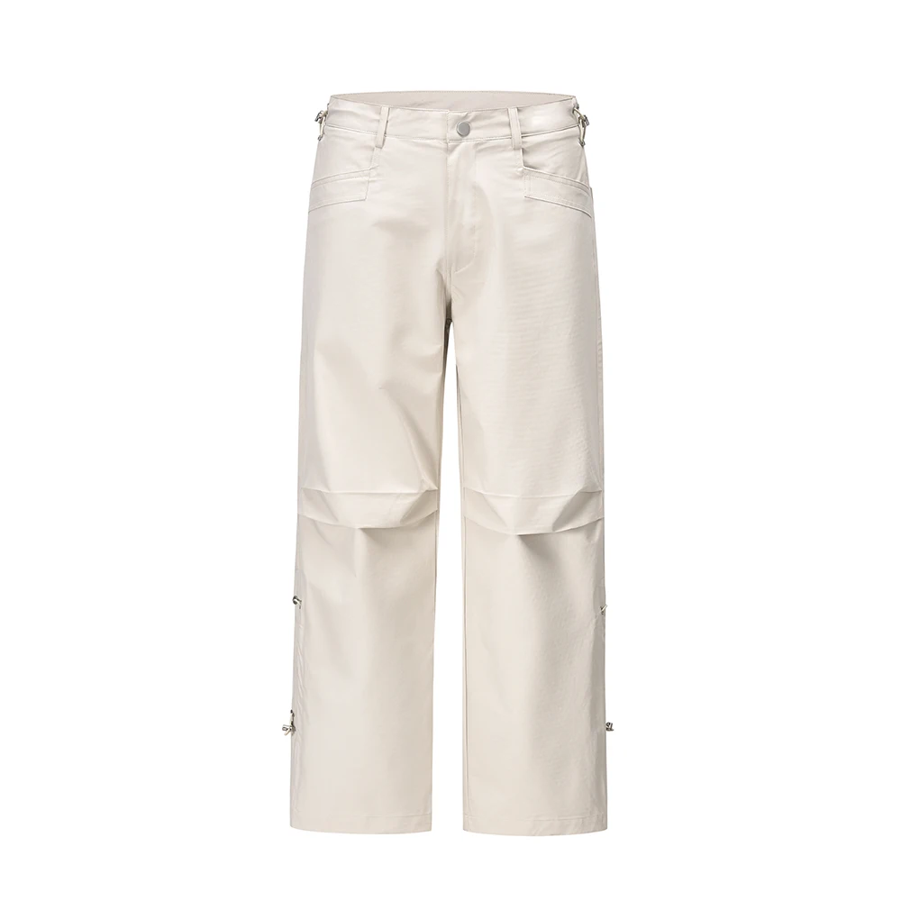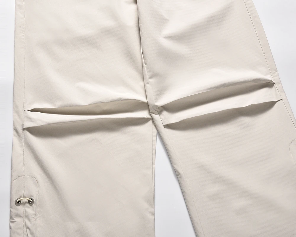 Hearujoy Nylon Quick Dry Pleated Knee Wide Leg Baggy Cargos Men's Drawstring Waist Straight Casual Trousers Y2K Oversized Loose Pants