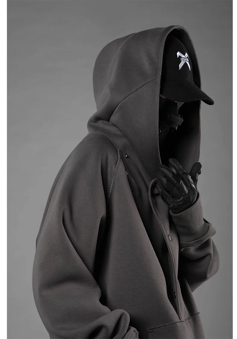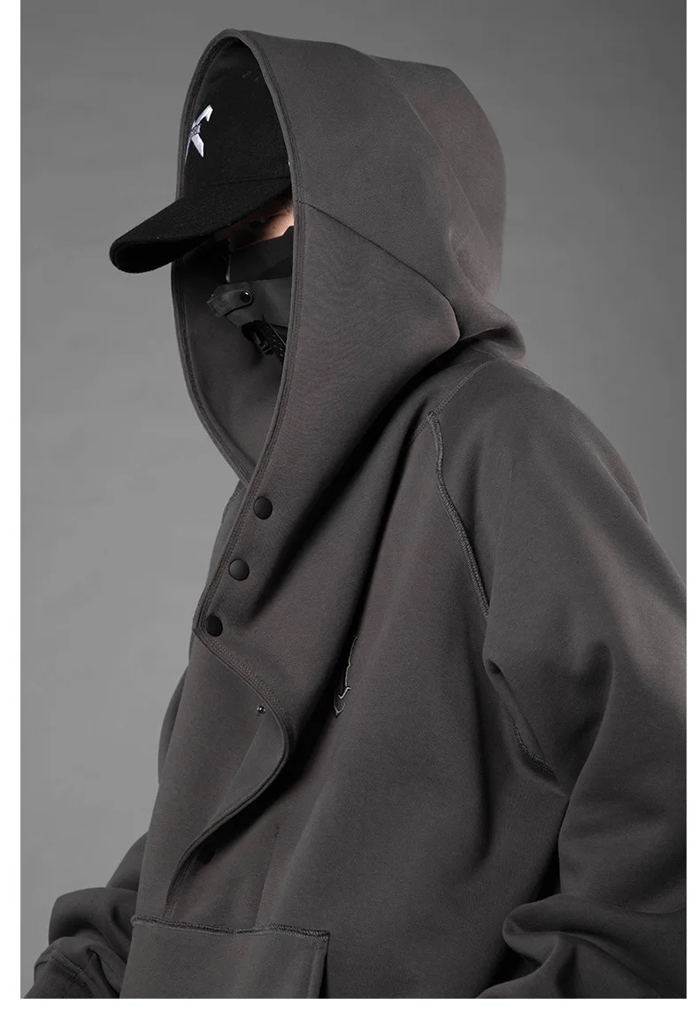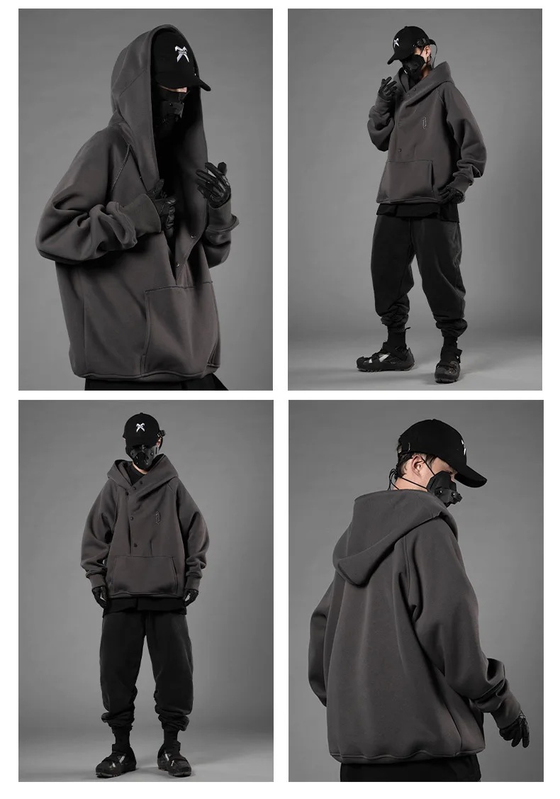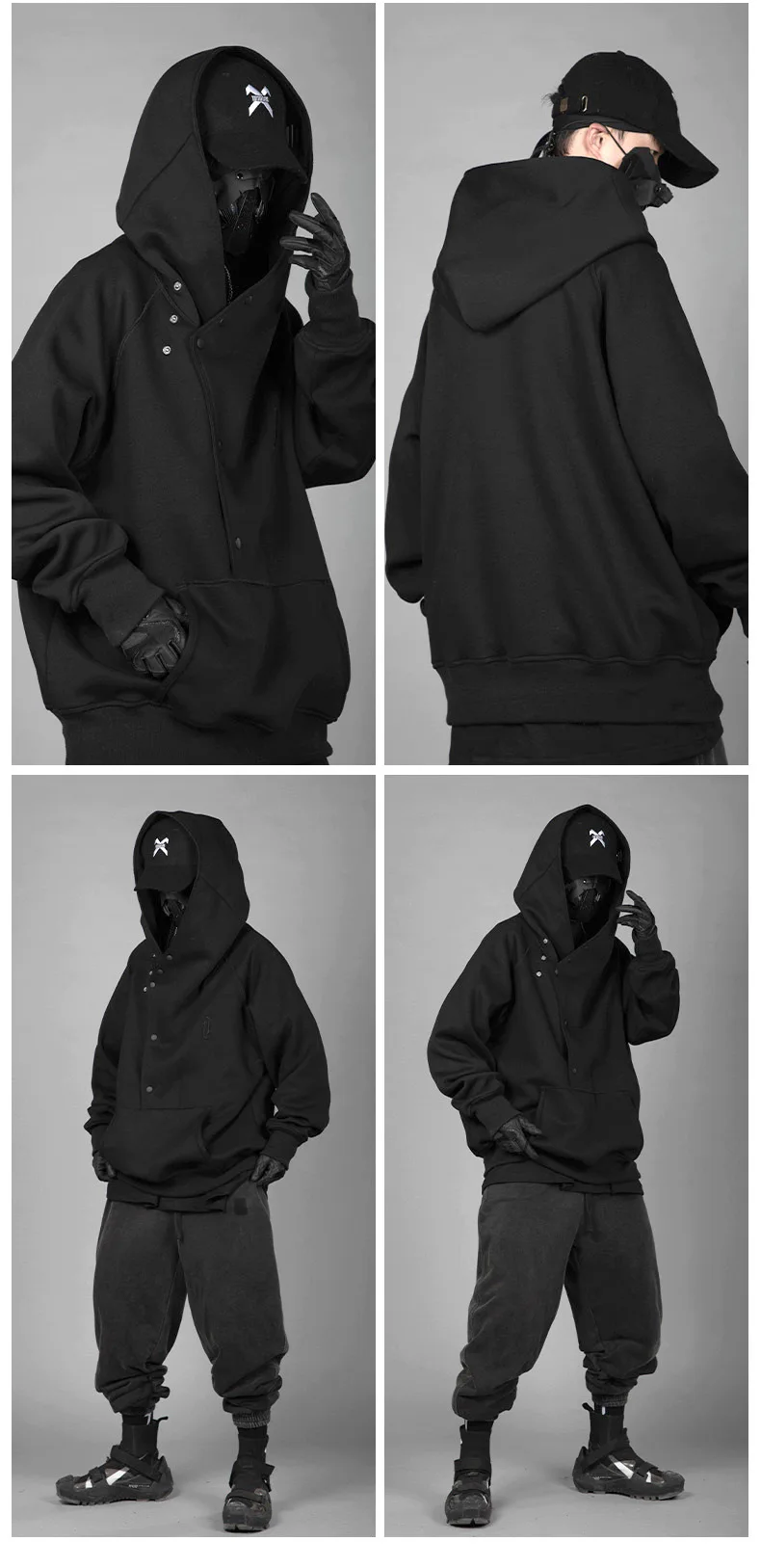 Hearujoy Oblique Placket Punk Hip Hop Hoodies Men Women Tactical Techwear Street Casual Sweatshirt Sudaderas