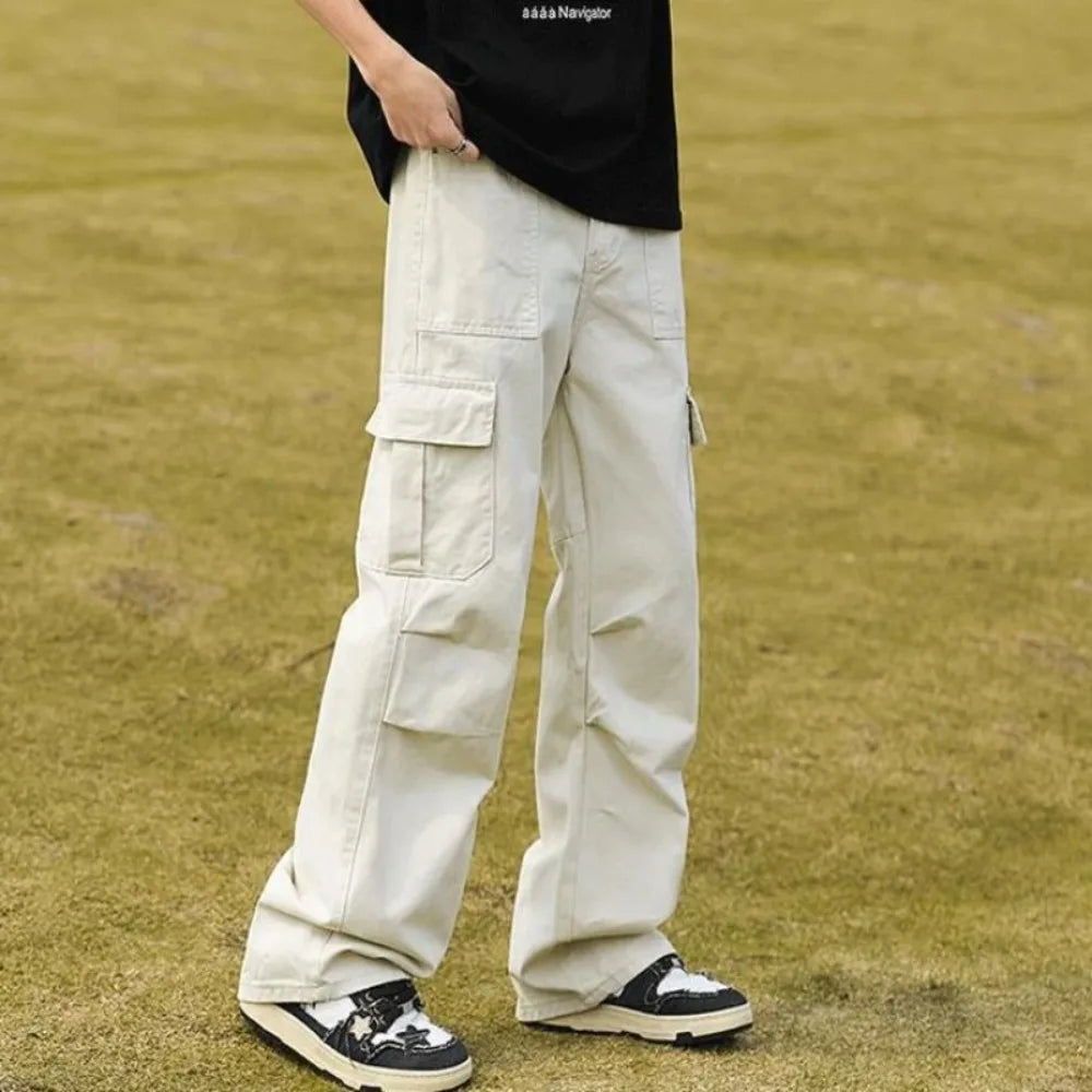 HEARUJOY - Off-white Work Casual Pants Men's 2025 American High Street Large Pocket Design Loose Straight Pants