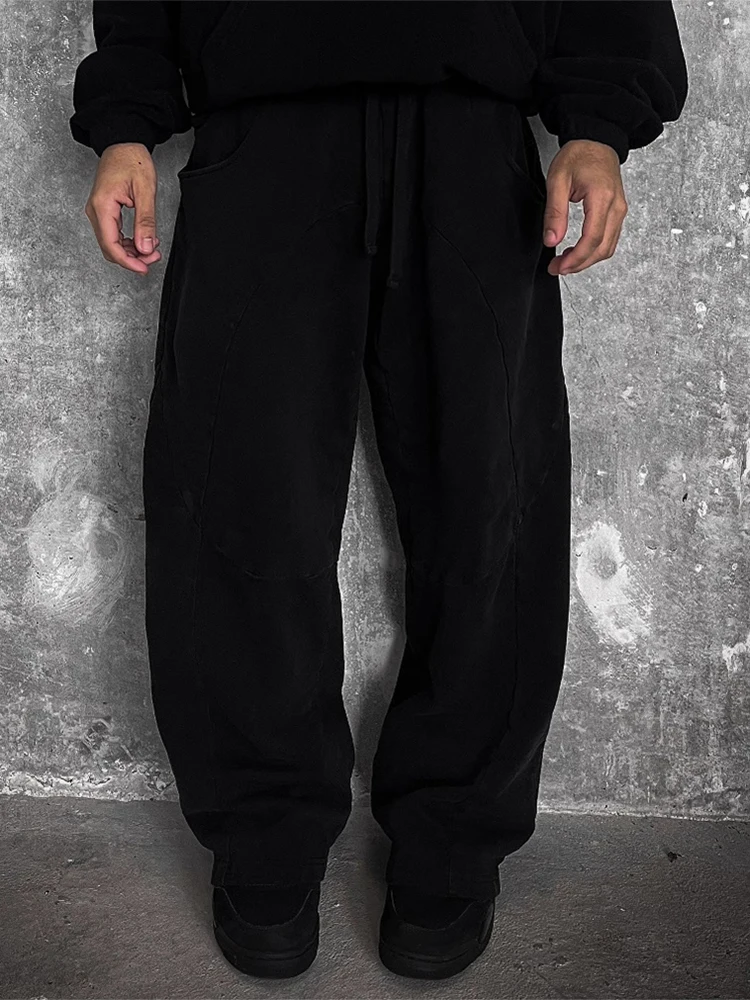 HEARUJOY - Outdoor Casual Men's Loose Sweatpants 2025 Autumn Y2K Style Double Waist Drawstring Straight Pants For Men Hip Hop Baggy Pants