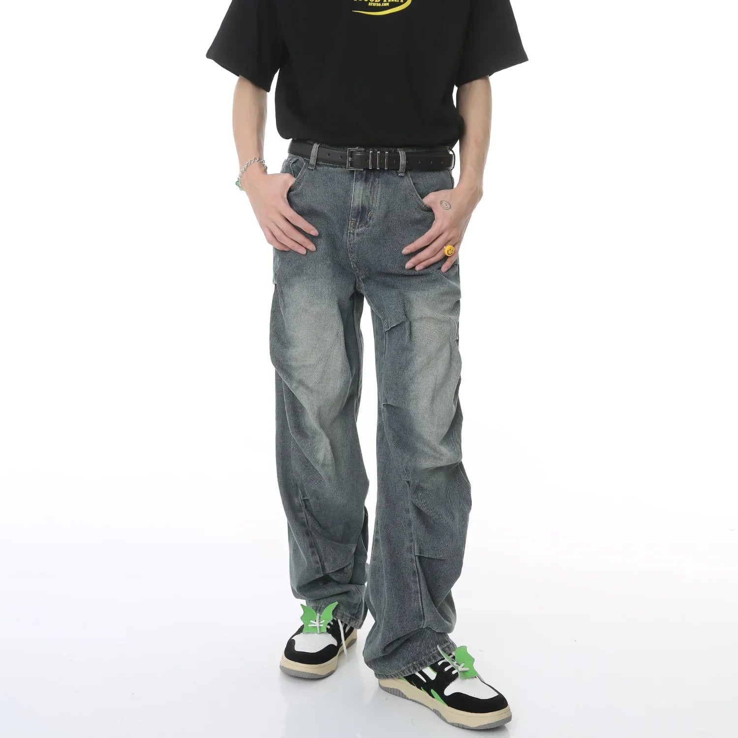 Hearujoy Oversize Jeans Men Hip Hop Pants Distressed Casual Designer Blue Denim Trousers Male Punk Japanese Streetwear Hip Hop