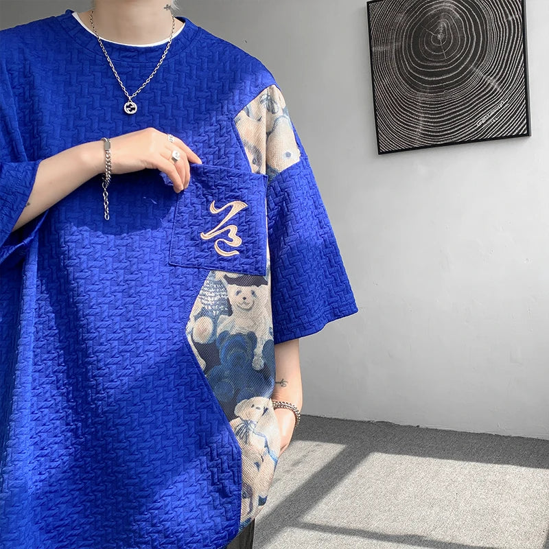 Hearujoy Patchwork Contrast Color T Shirt Men Summer Fashion Top Tees Unisex Harajuku T-shirt Male Half Sleeve TShirts Blue White Black