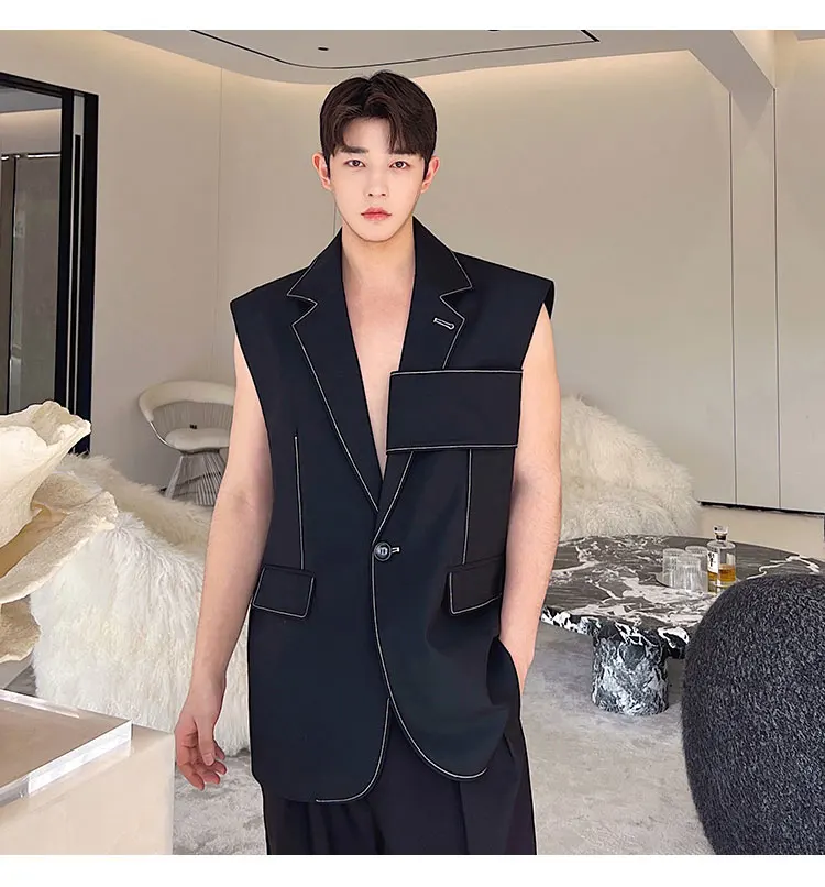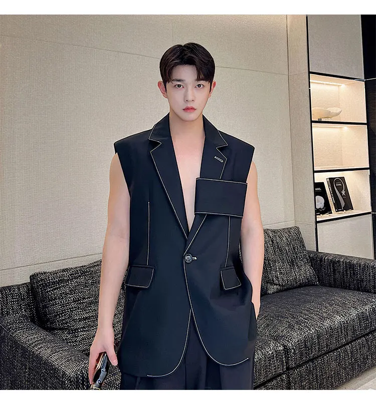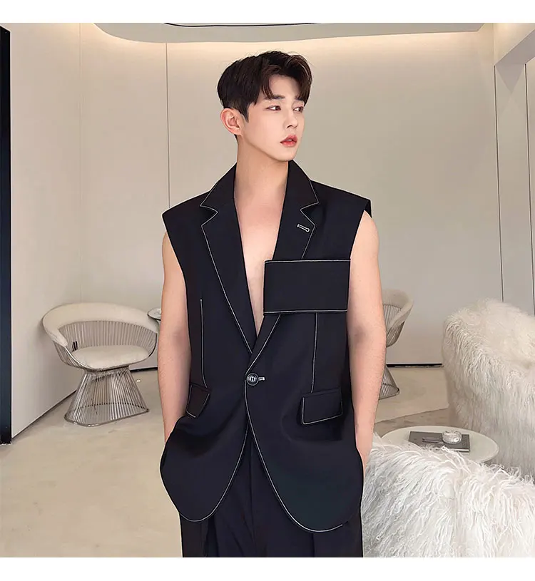 Hearujoy Personality Korean Fashion Design Long Suit Vest Mens Casual Long Suit Waistcoat Chic Style Sleeveless Jacket Gilet Homme