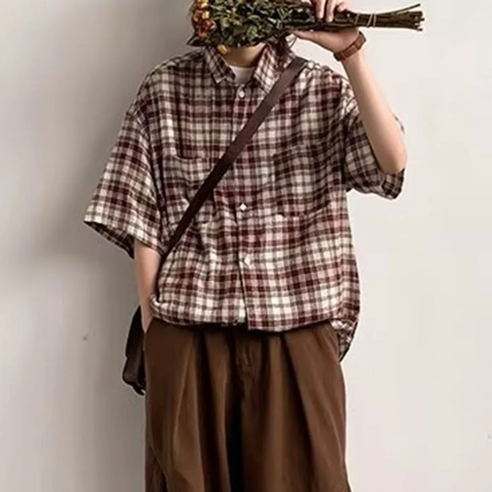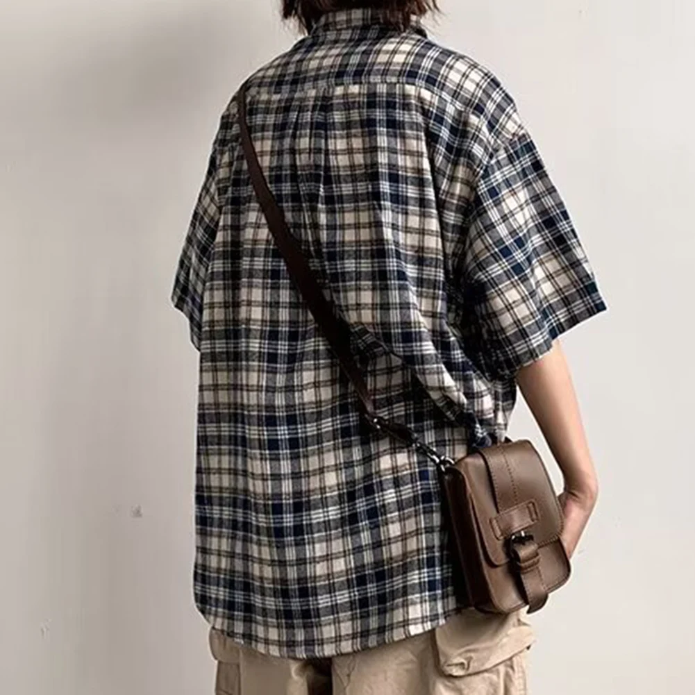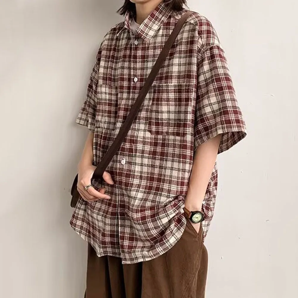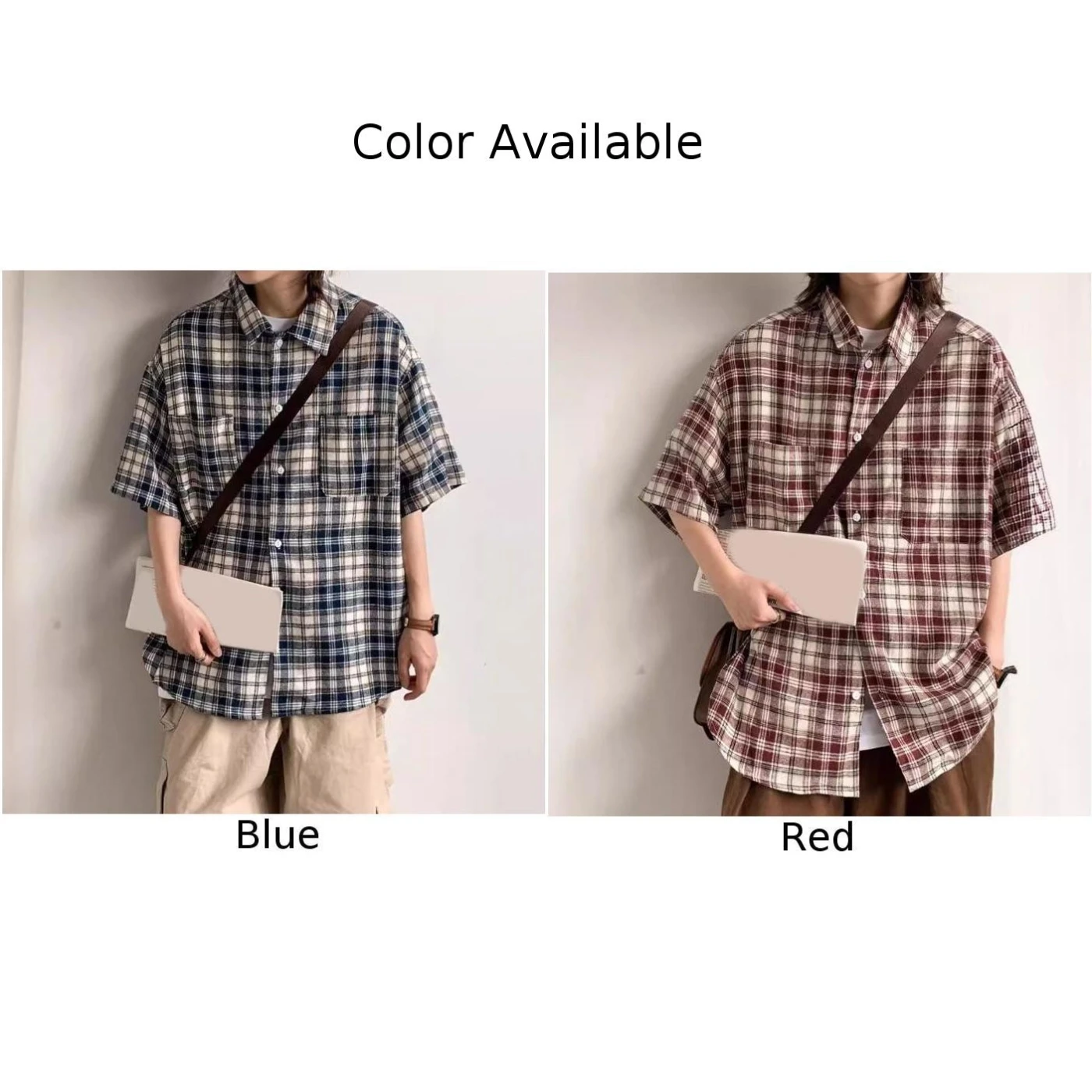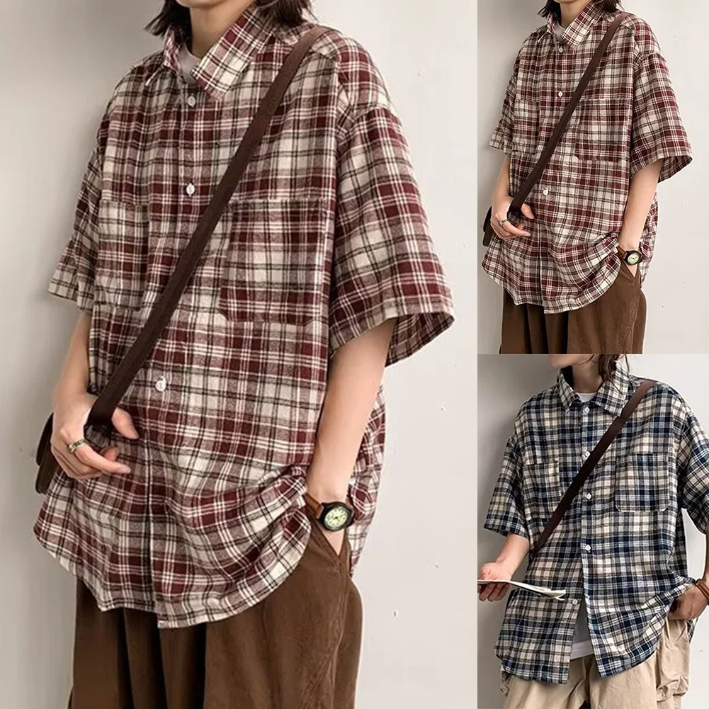 HEARUJOY - Plaid Shirt For Men Casual Couple Loose Mens Shirt Polyester Fabric Slight Stretch All Seasons Applicable Male