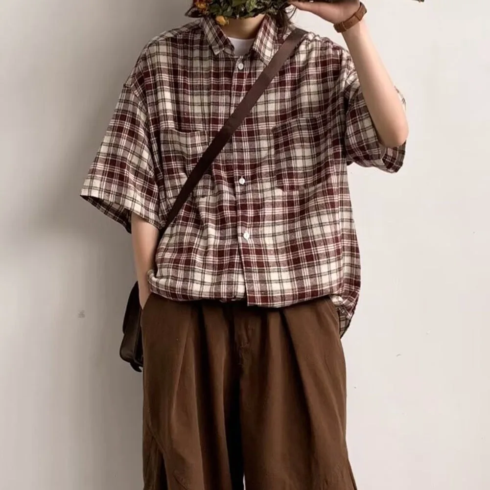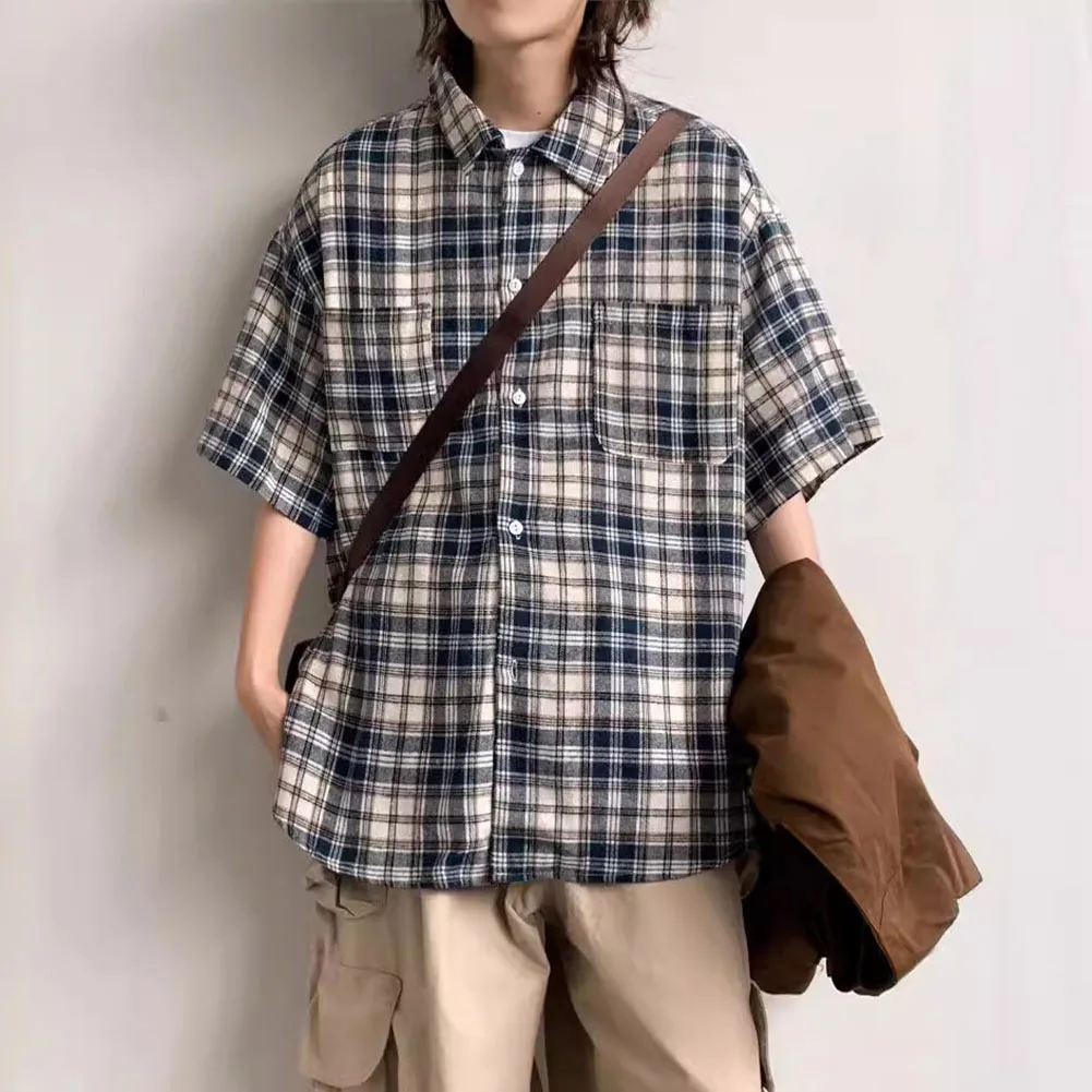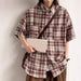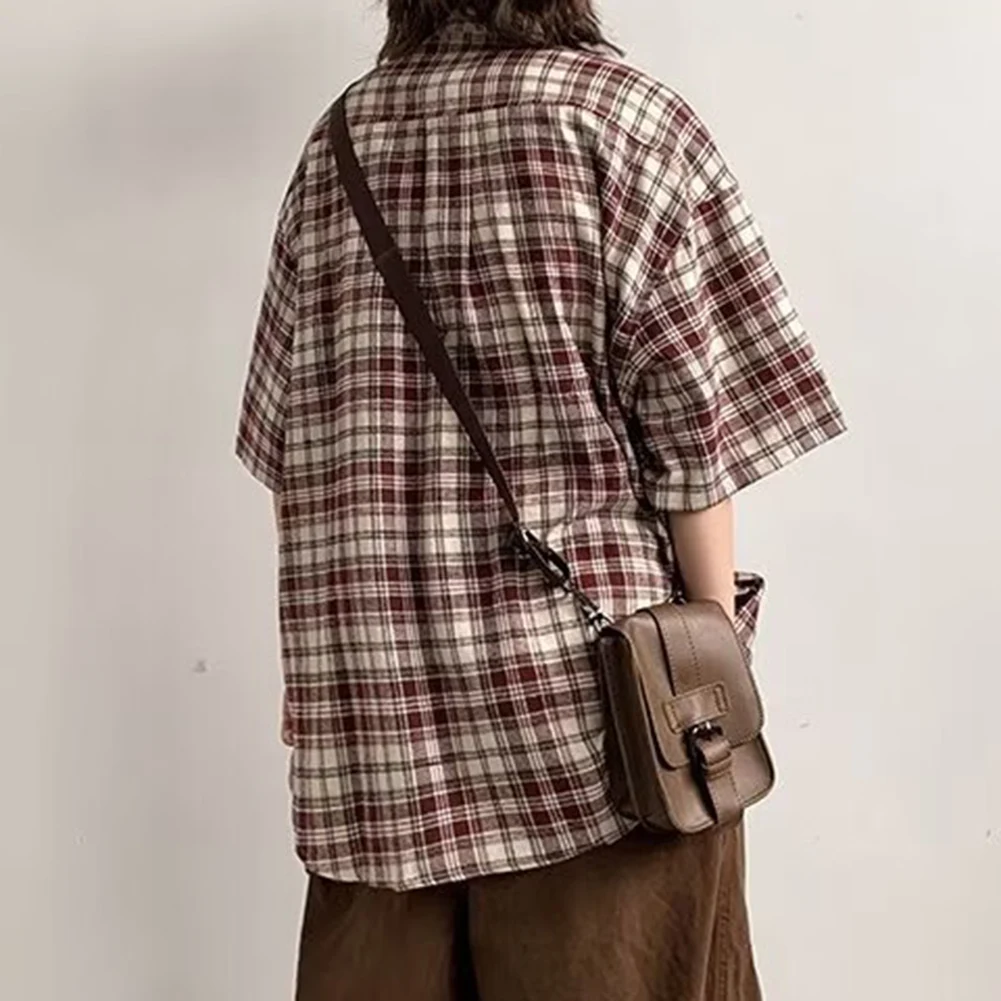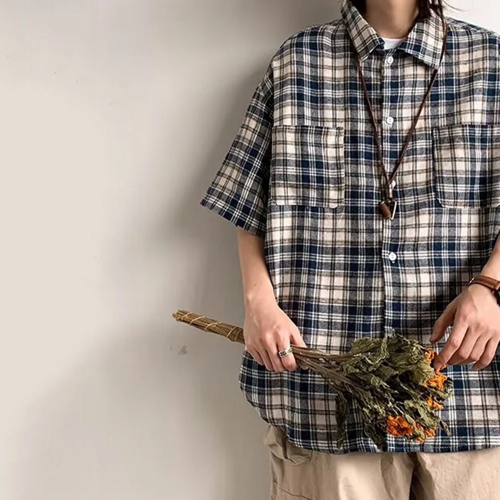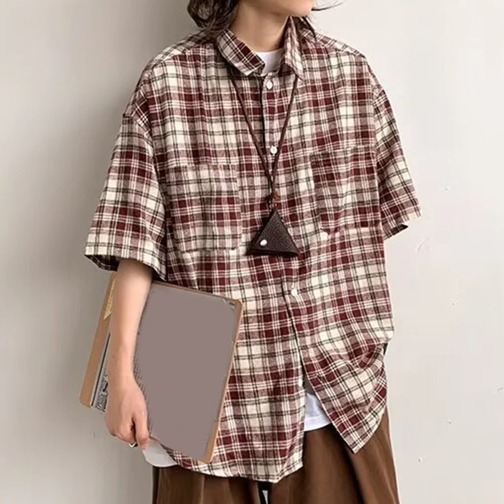 HEARUJOY - Plaid Shirt For Men Casual Couple Loose Mens Shirt Polyester Fabric Slight Stretch All Seasons Applicable Male