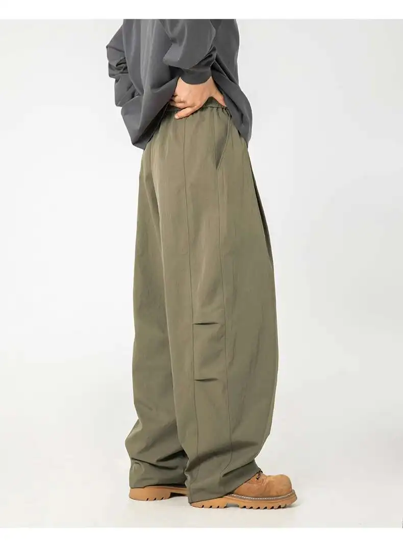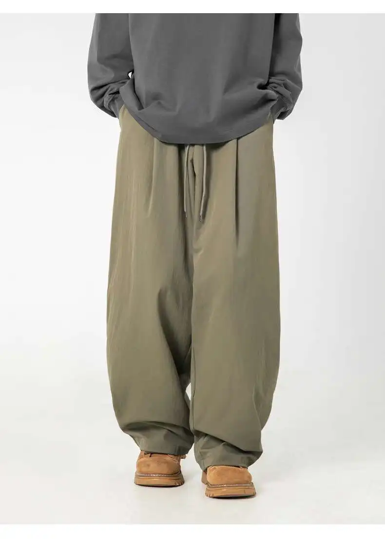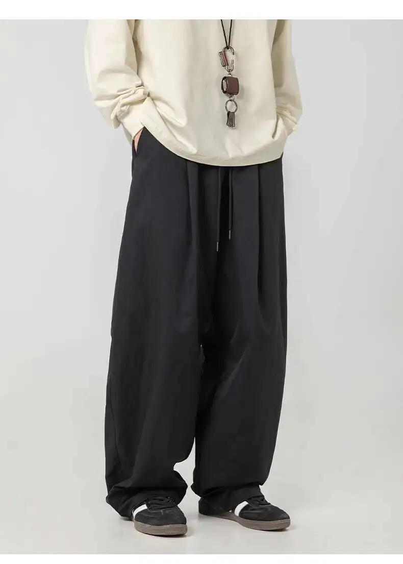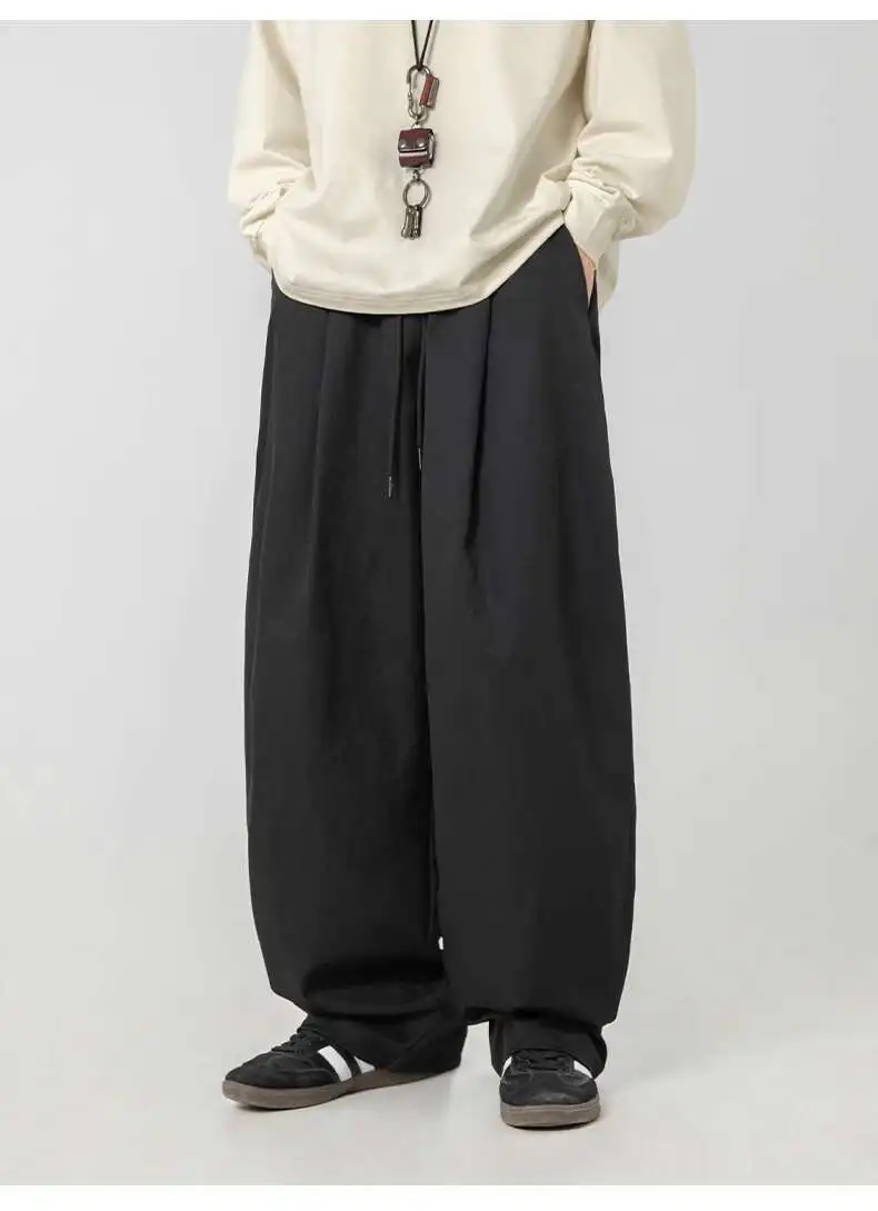 HEARUJOY - Pleated Design Men Casual Trousers Solid Color Drawstring Summer Korean Style Elastic Waist Straight Leg Male Pants 9W3495