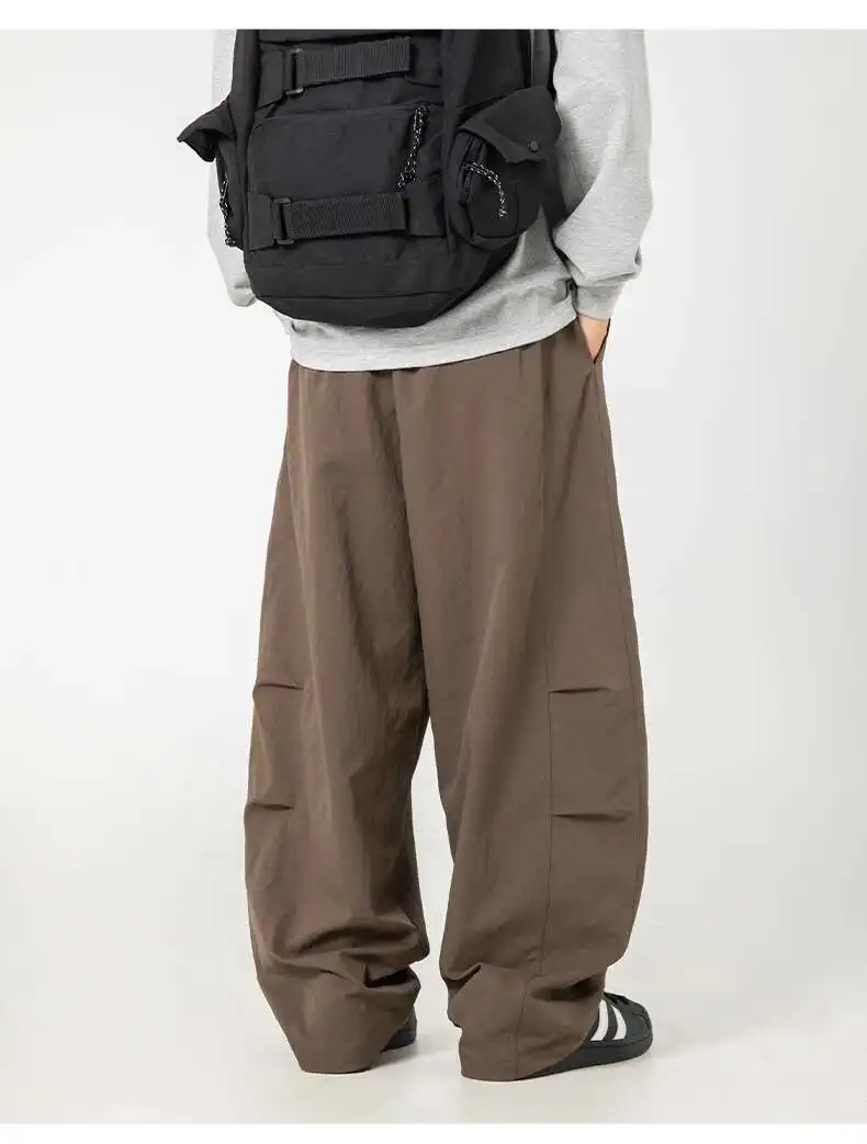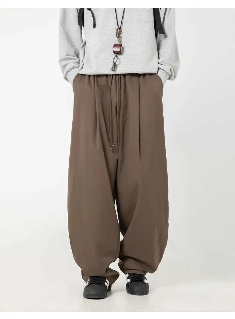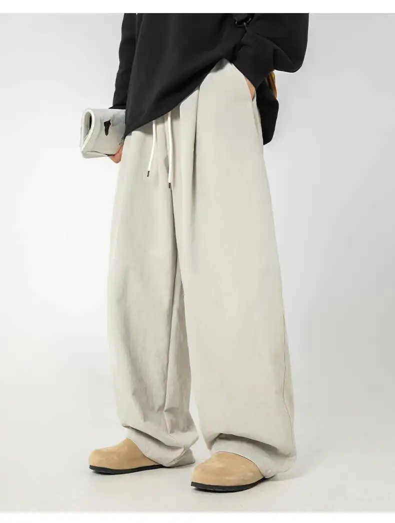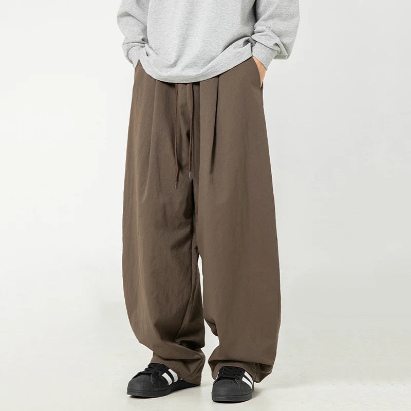 HEARUJOY - Pleated Design Men Casual Trousers Solid Color Drawstring Summer Korean Style Elastic Waist Straight Leg Male Pants 9W3495